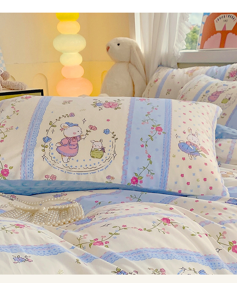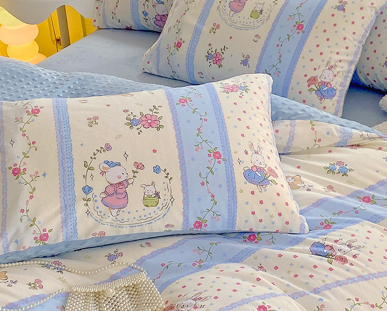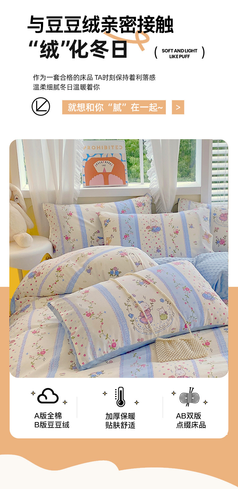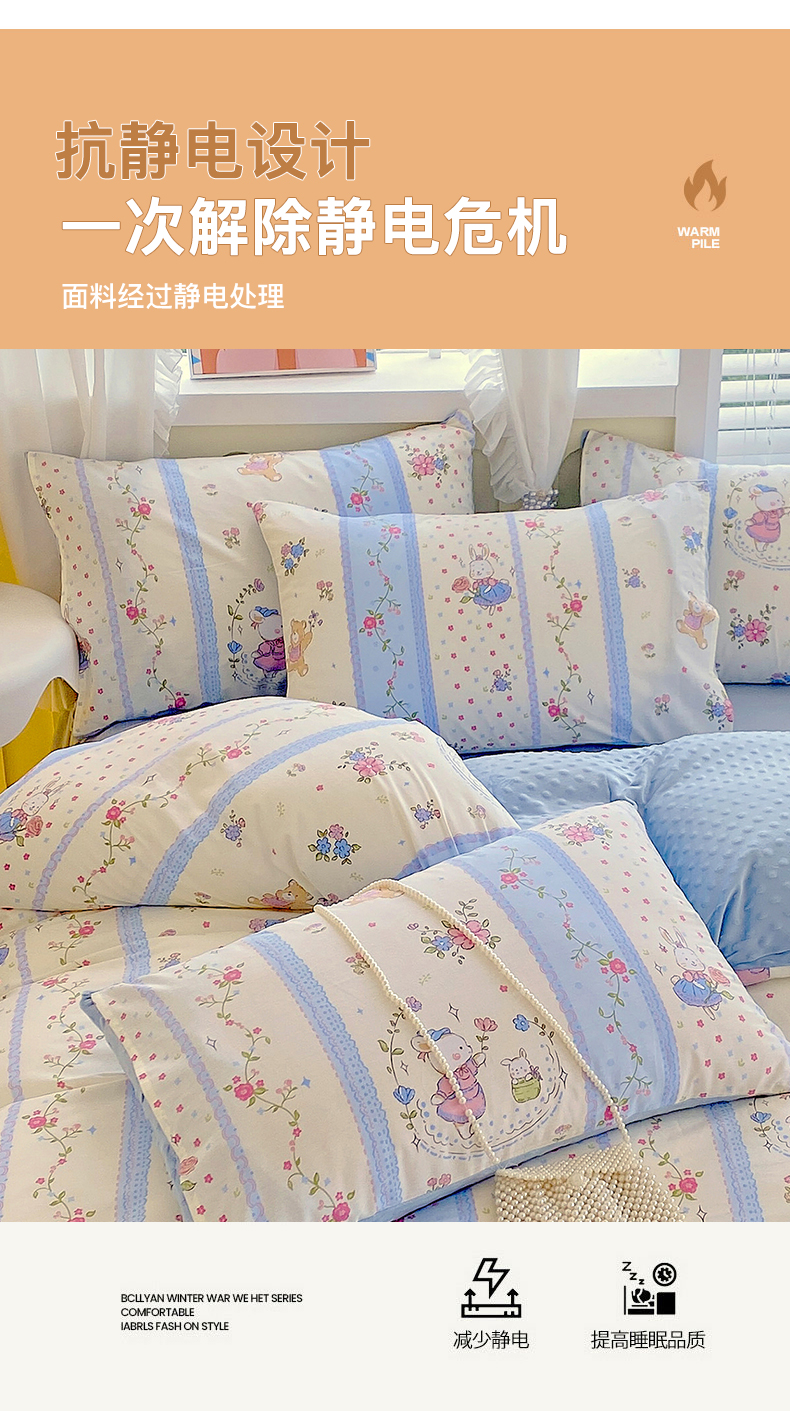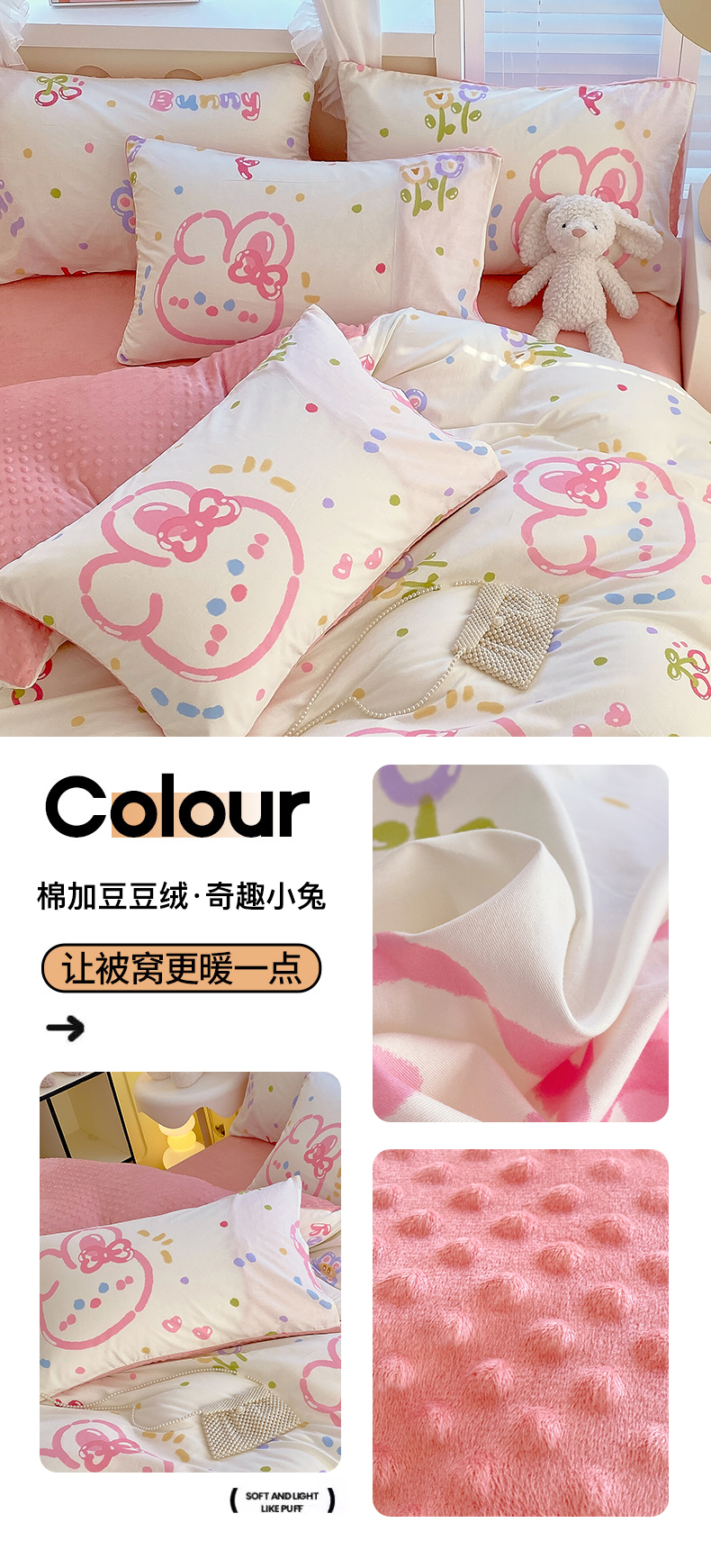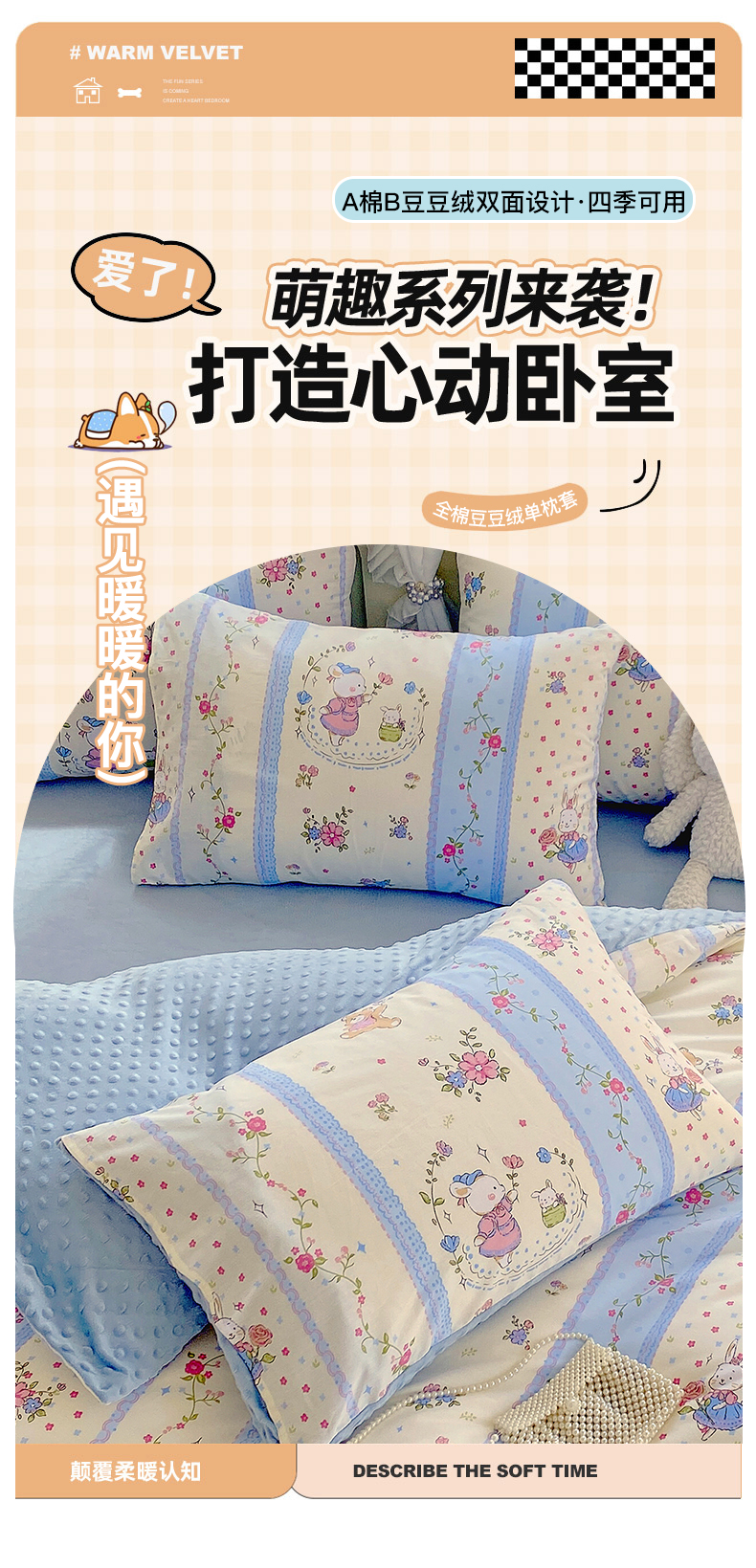 • 91家纺网 家纺一手货源 找家纺 金鑫汇家纺 2025新款全棉豆豆绒系列单枕套-棉加绒系列 棉加豆豆绒-快乐萌兔