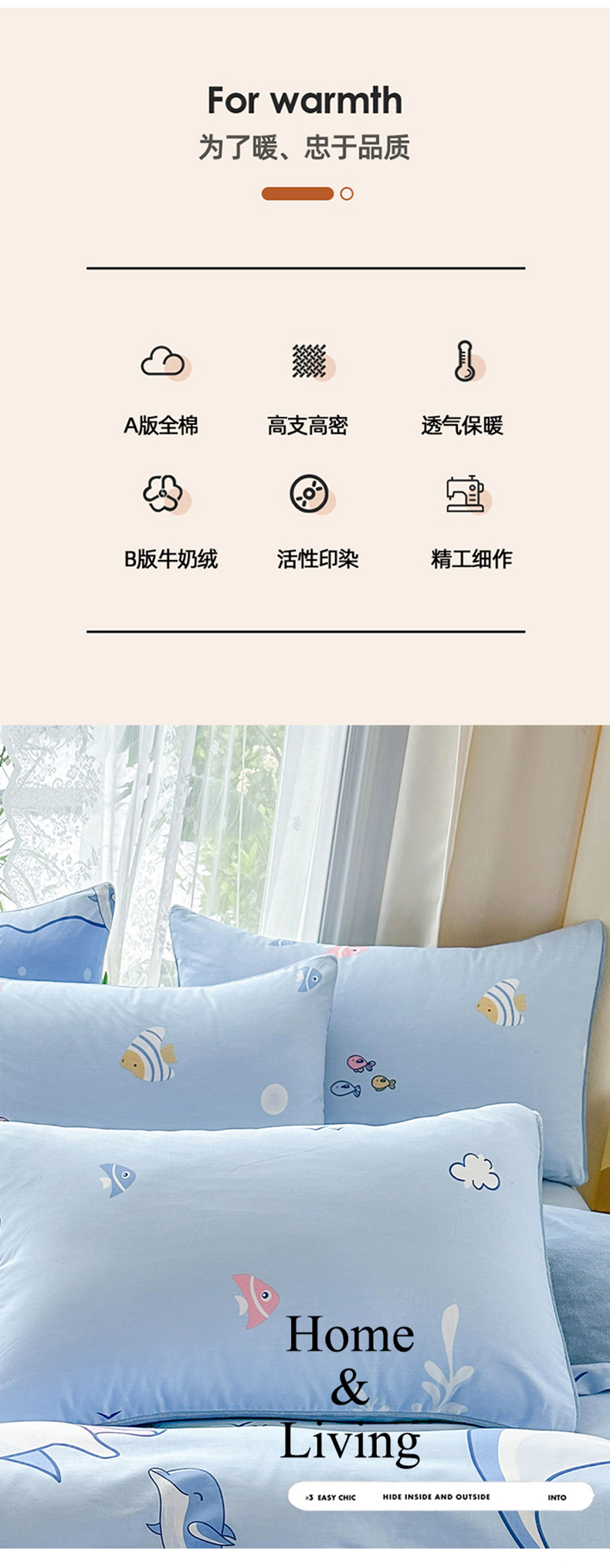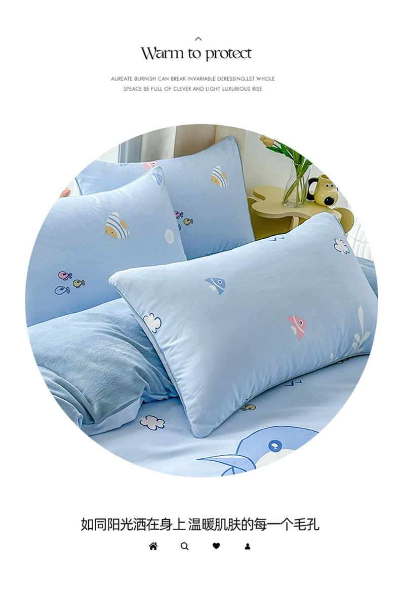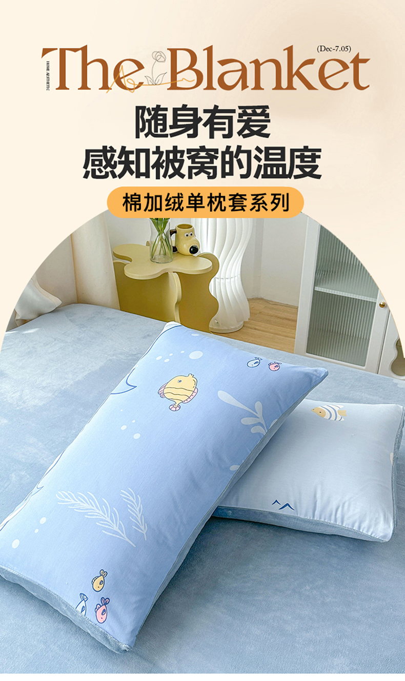 金鑫汇家纺 2025新款全棉豆豆绒系列单枕套-棉加绒系列 棉加绒-海洋世界