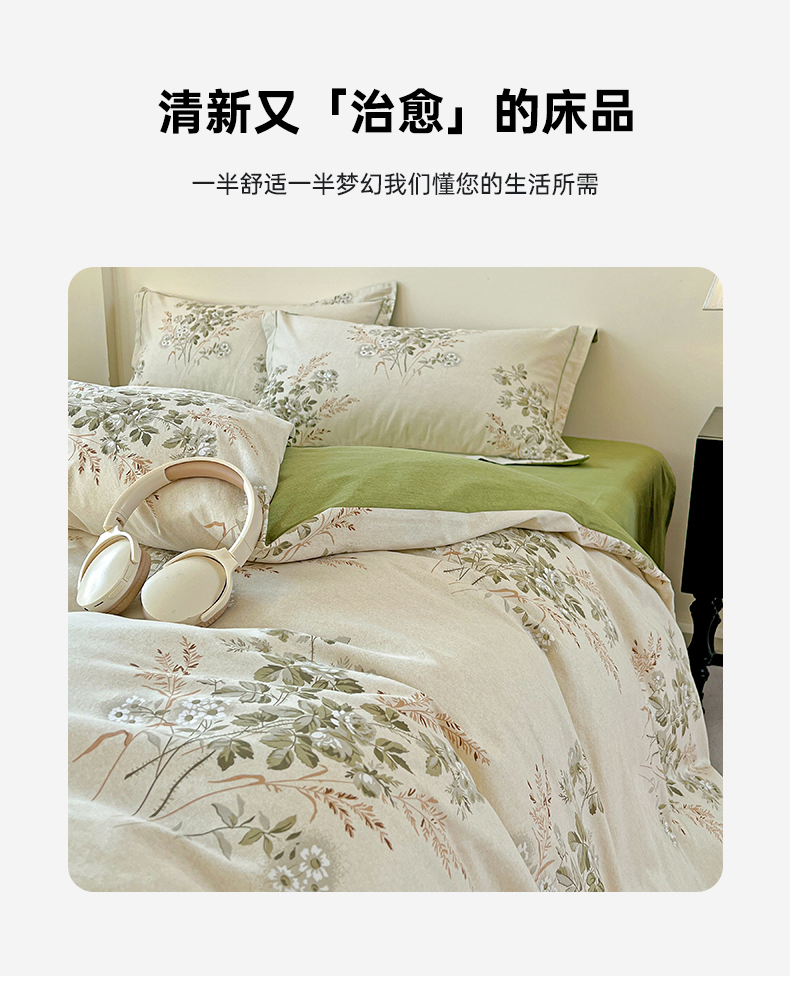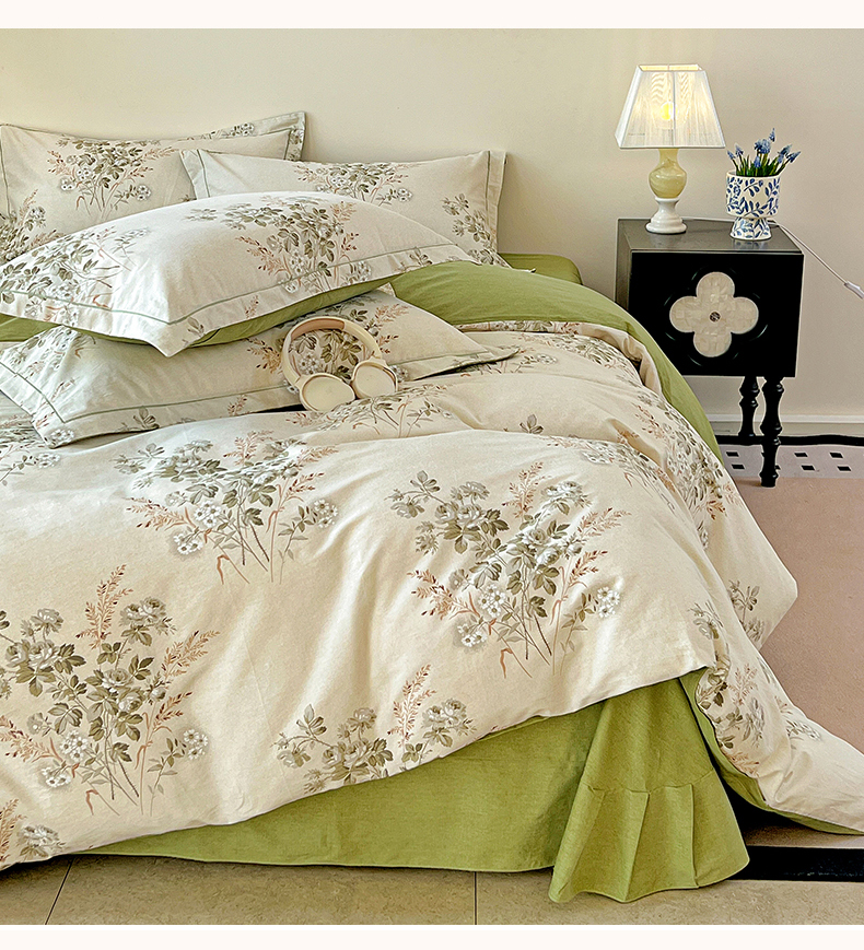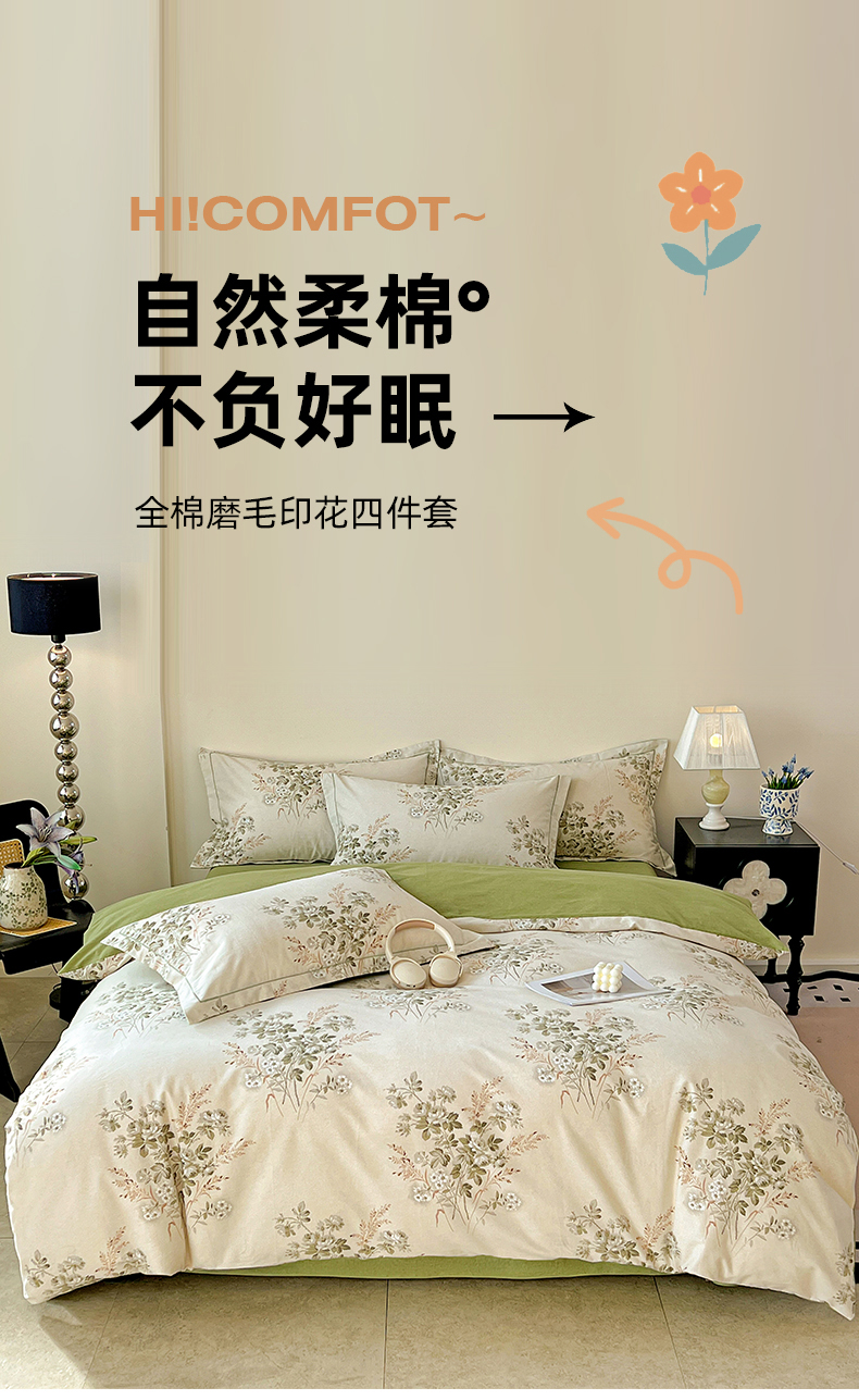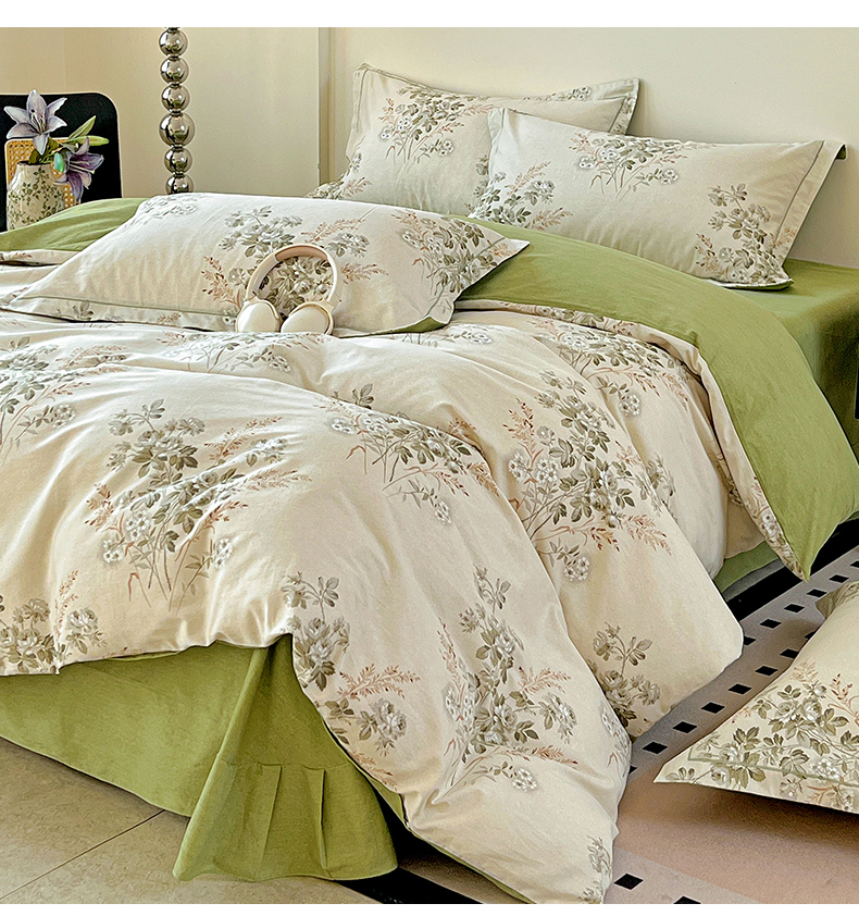 亿梵家居 2026新款全棉纯棉磨毛四件套 繁花-绿