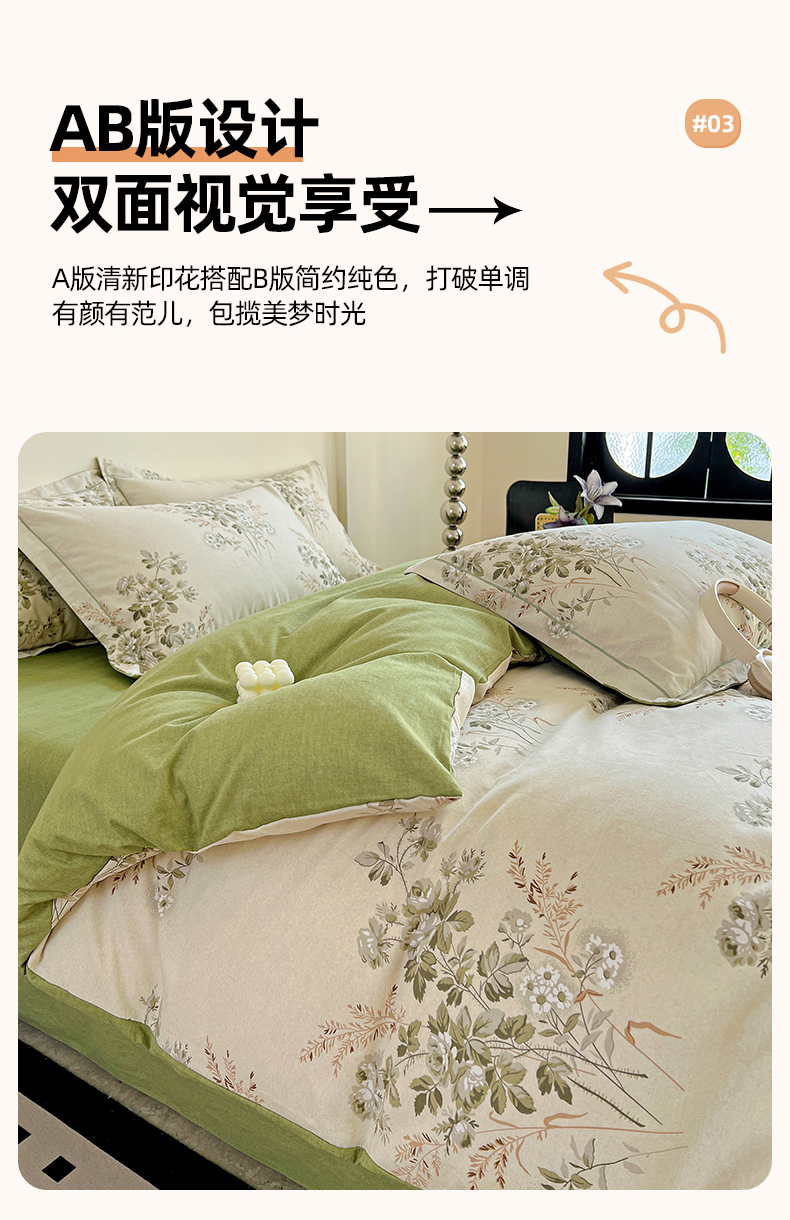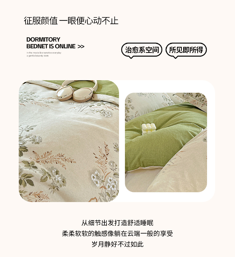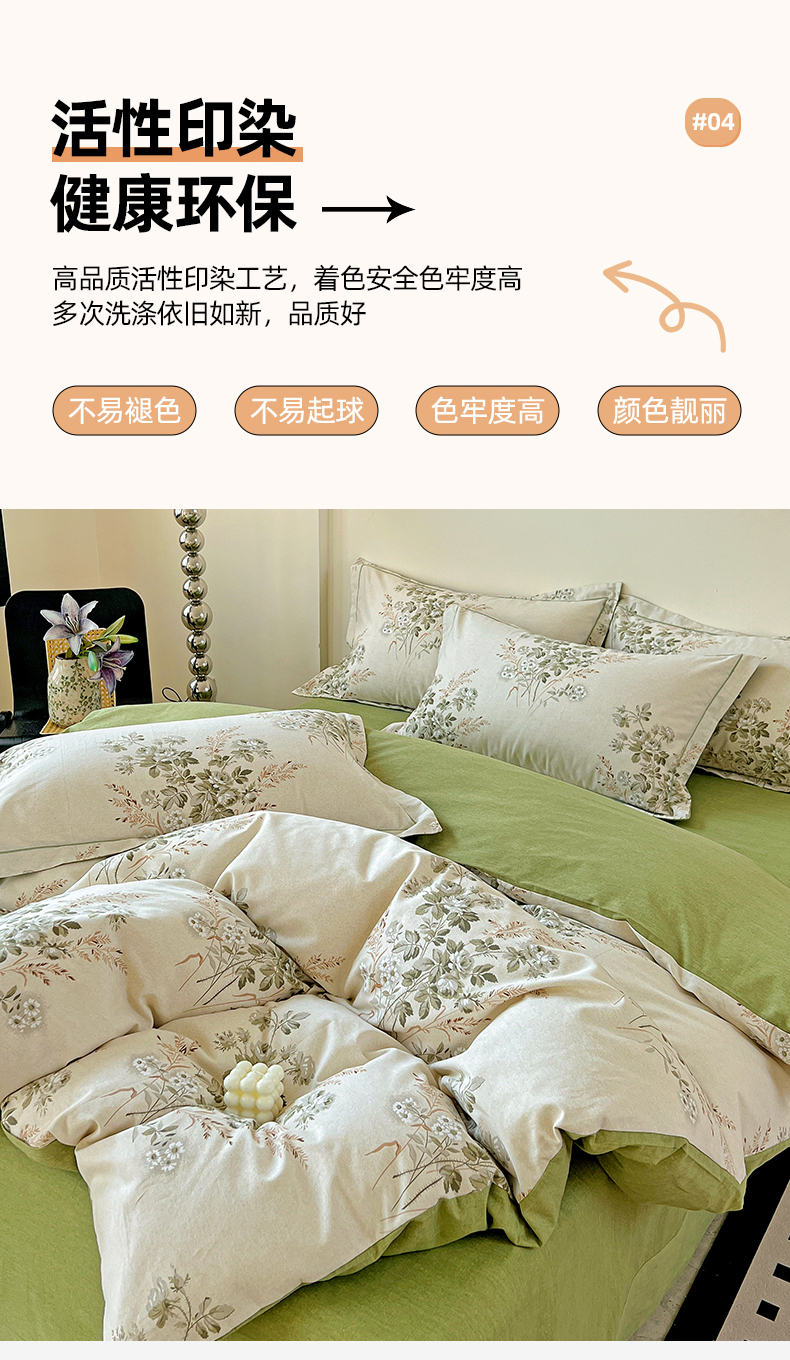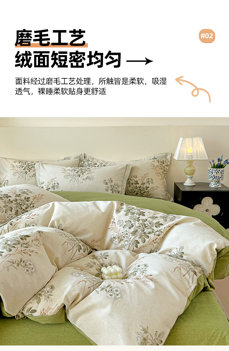 亿梵家居 2026新款全棉纯棉磨毛四件套 繁花-绿