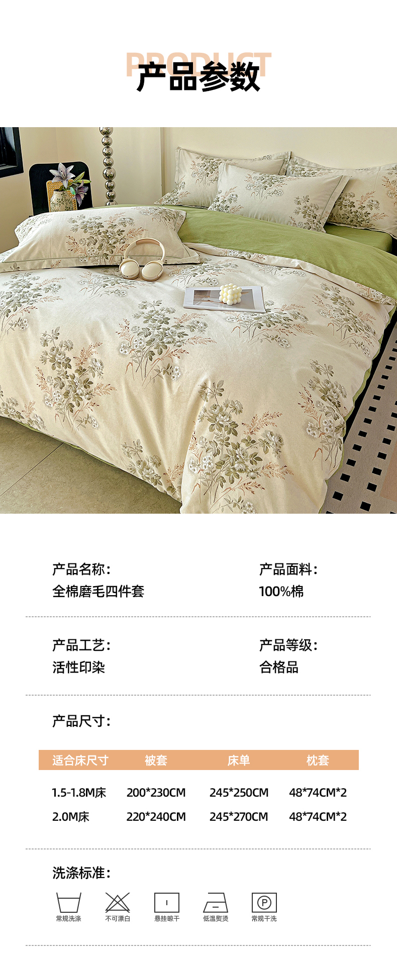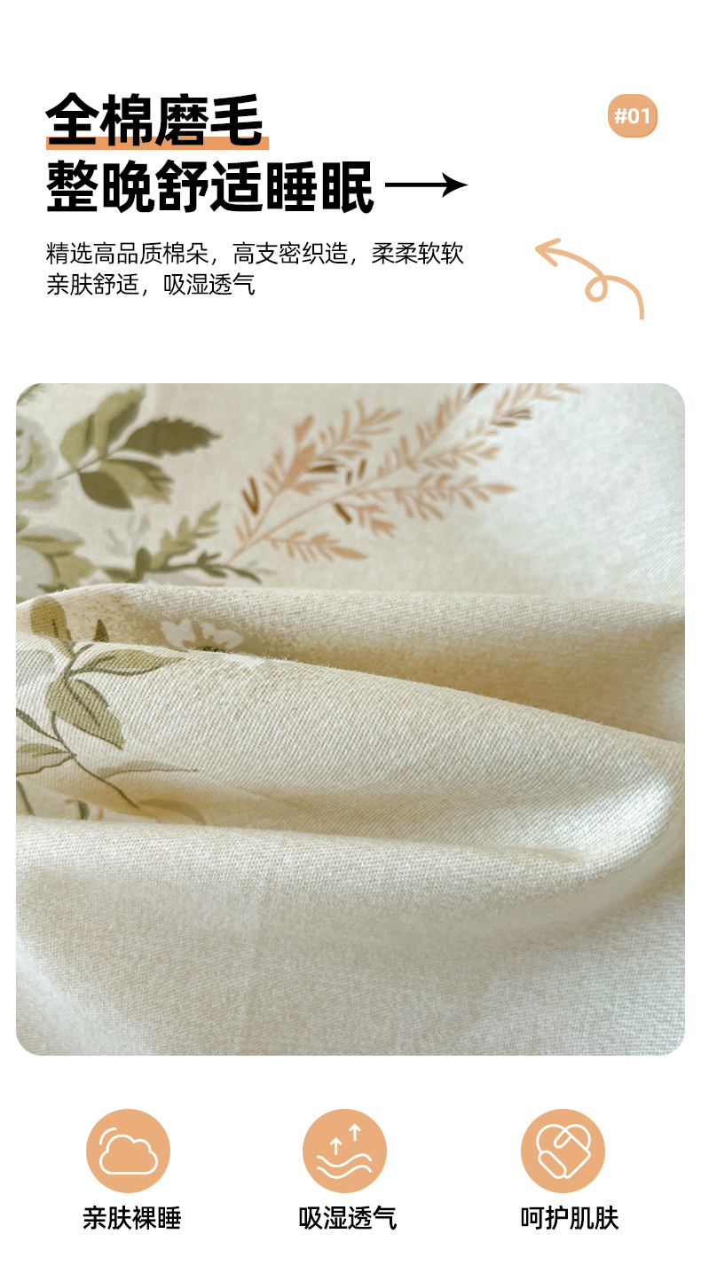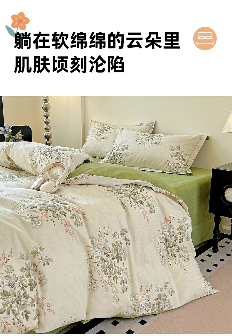 商品名称:亿梵家居 2026新款全棉纯棉磨毛四件套 繁花-绿