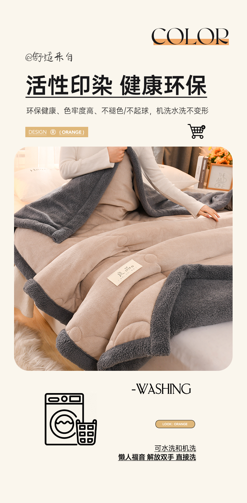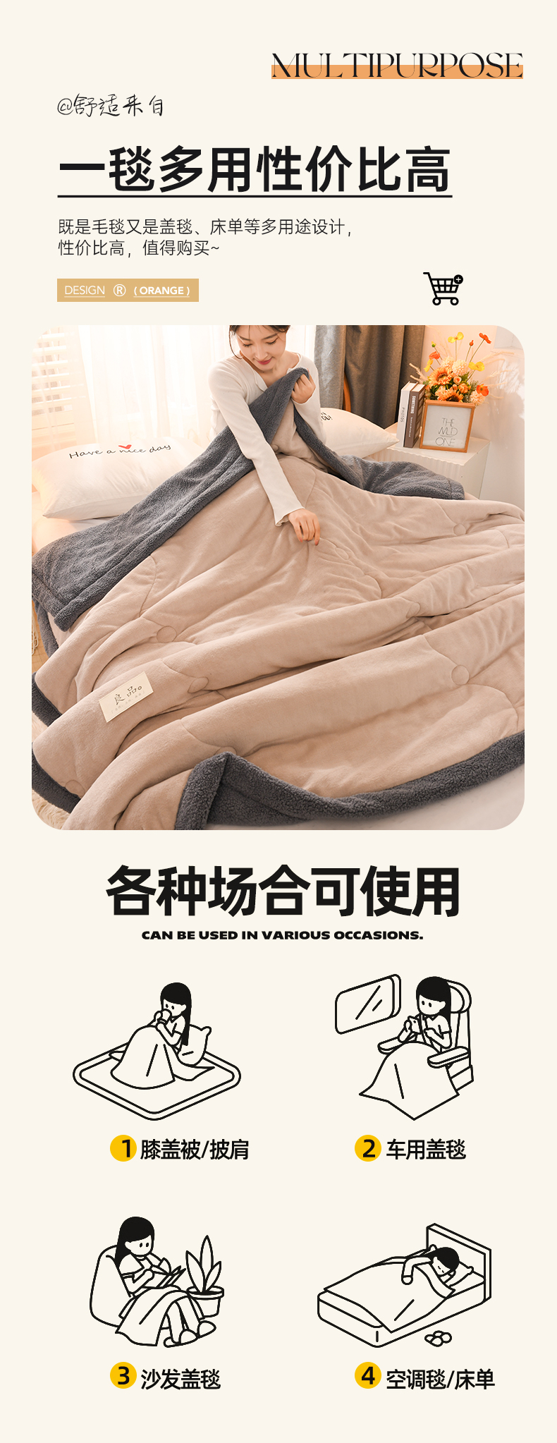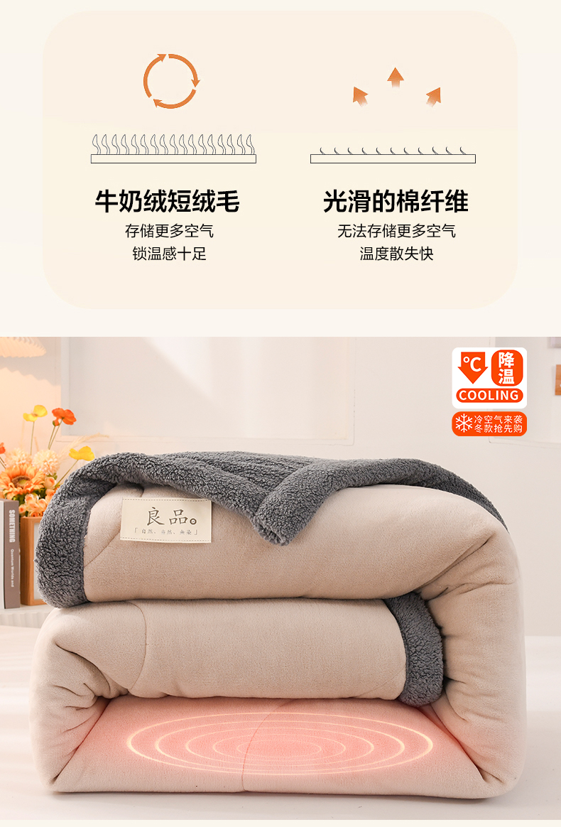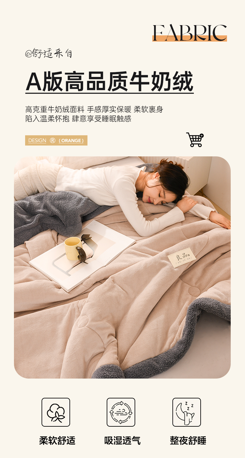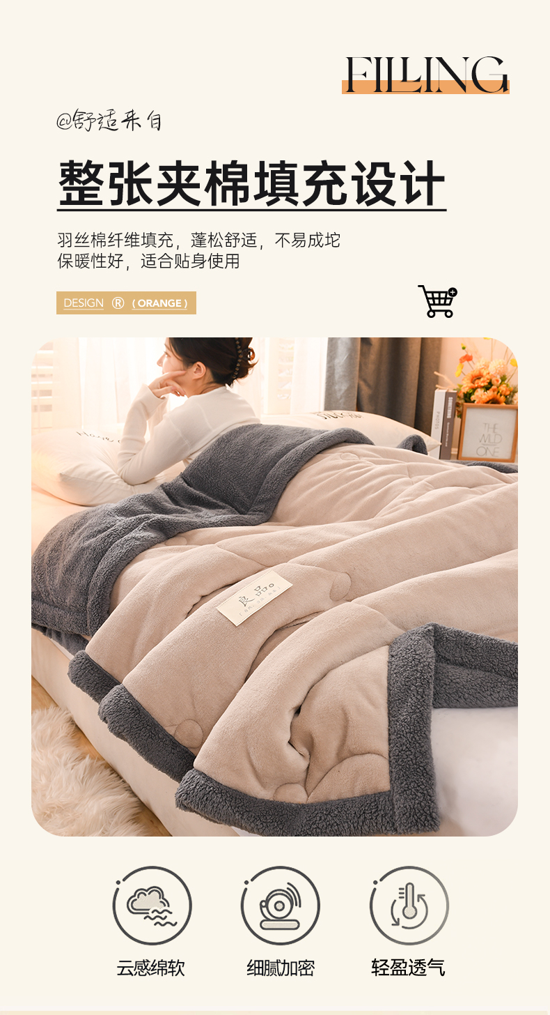 商品名称:恋绒家纺 2025新款三层牛奶绒夹棉毛毯复合盖毯直播外贸毯子 杏仁色