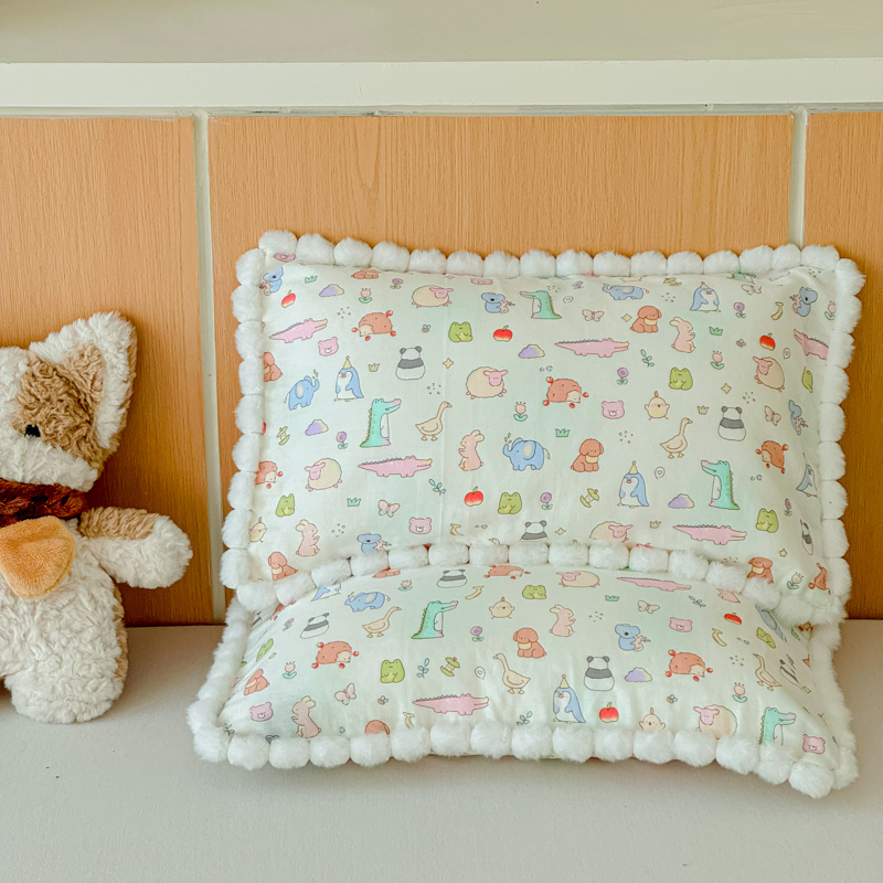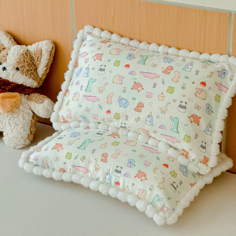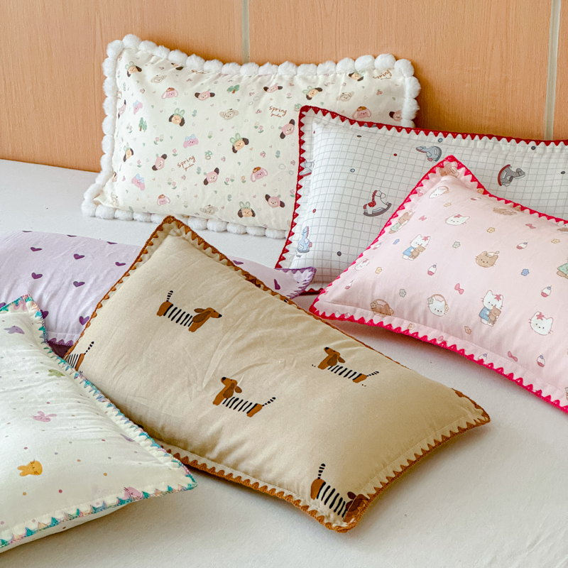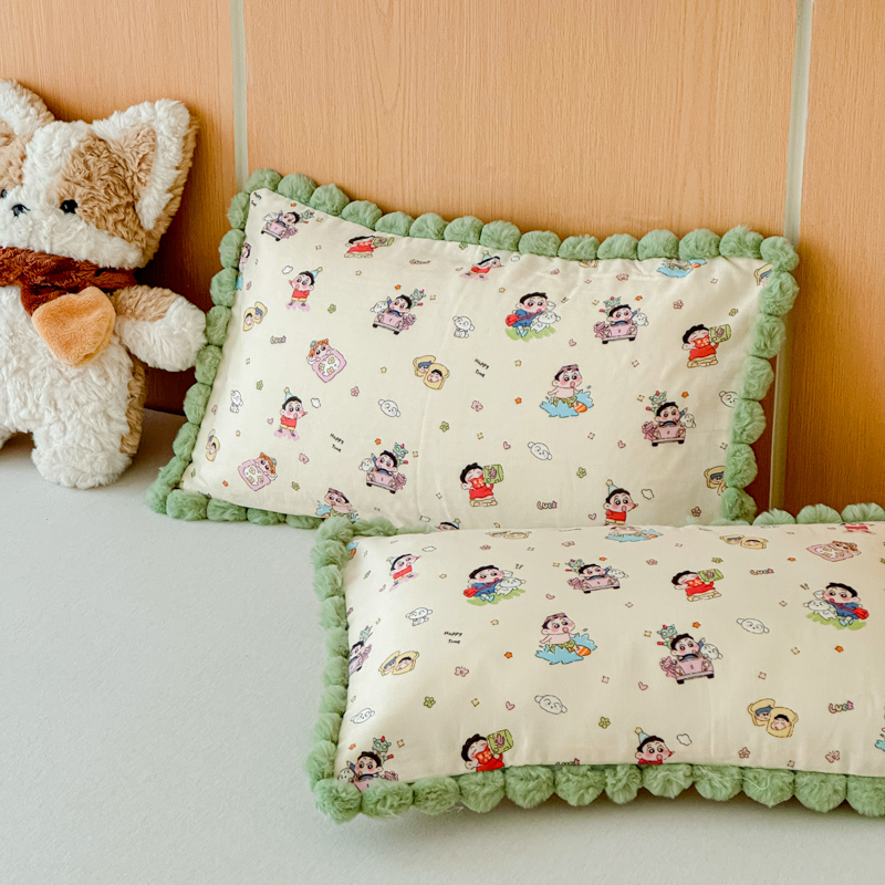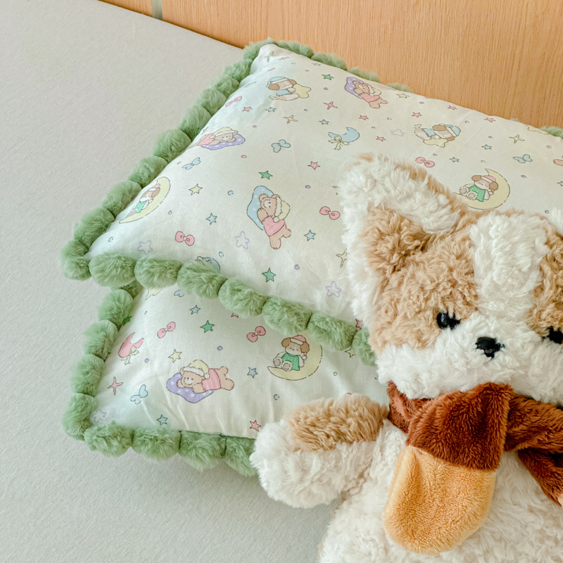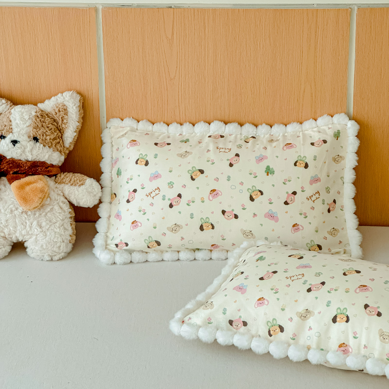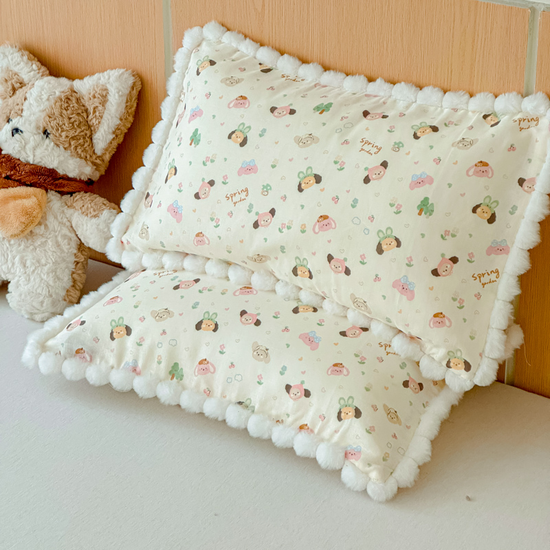 (总)金丝鸟家纺 2026新款全棉双层纱毛球款枕套多规格儿童枕套,叠拍组合图仅供展示,查理卧室,奇迹动物园 米,软萌游园会,吐司乐园