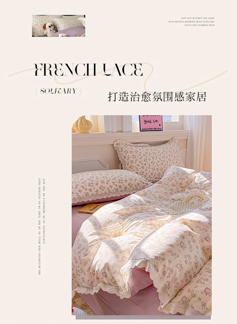 (总)芯贝儿 2026新款A类仿棉古法水洗棉复古法式花边四件套(提供买家秀),艾莎,花梦,锦上花开,兰溪,漫花蝶舞,甜菊,屹花,雨沫,组合图仅供参考不可下单