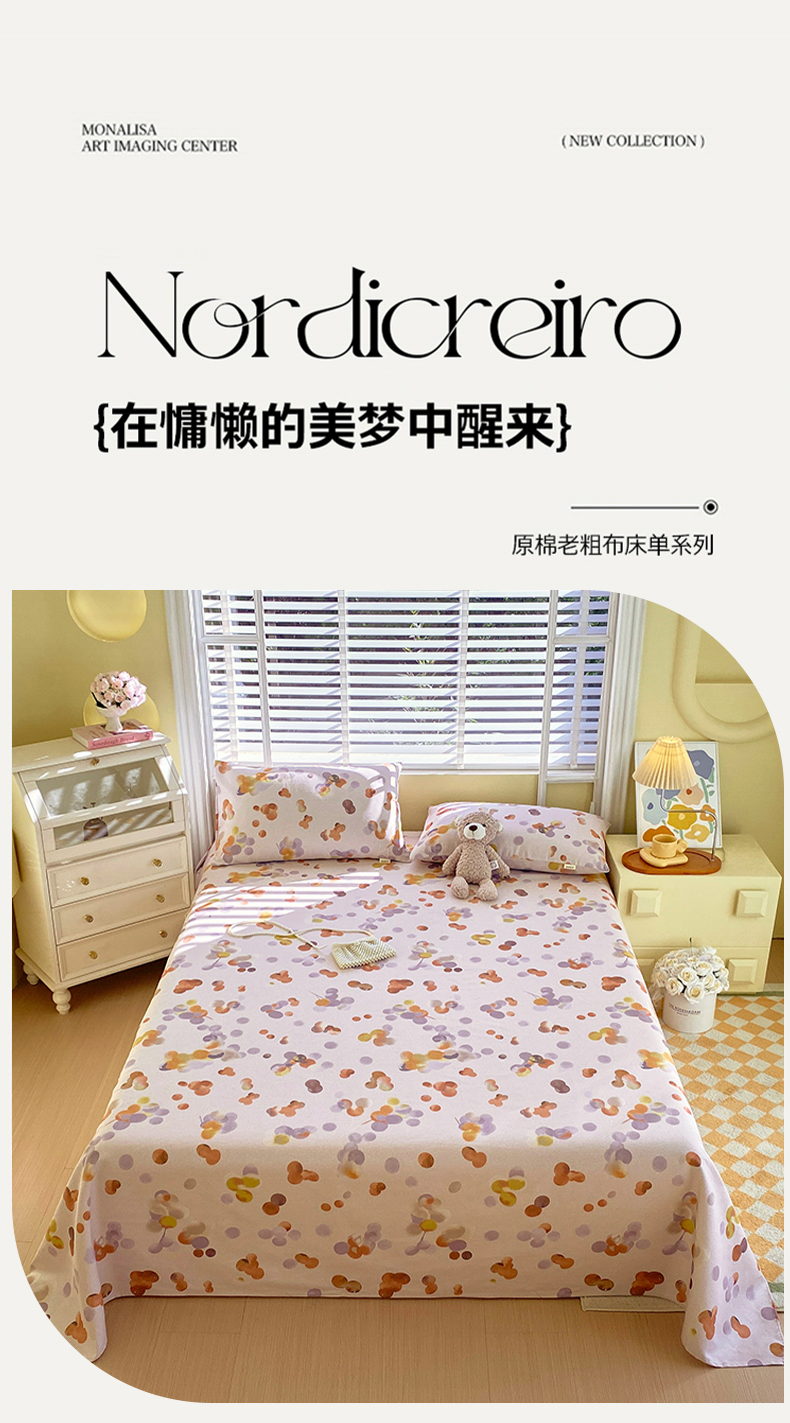 (总)爱彼家纺 2026新款升级细沙印花老粗布床单单品床单床单单件-细沙系列四,花笺,花漾手礼,花屿南瓜,蓝花序,蓝菊绘,山河日立,甜心