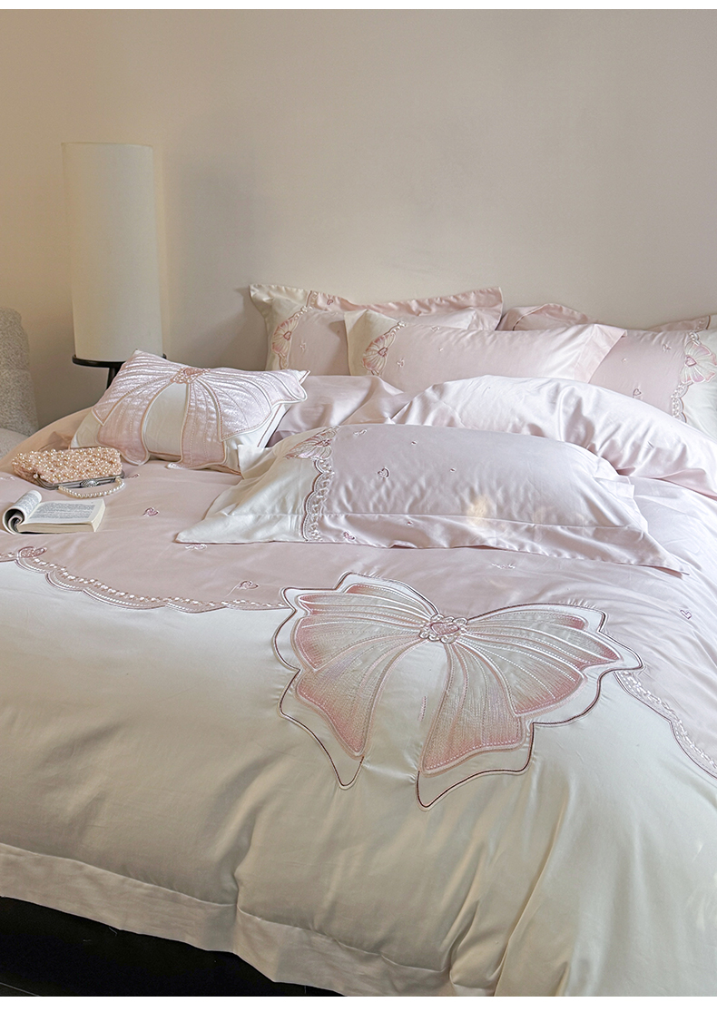 (总)东方合美(原:皇家传奇) 2026春夏新款长绒棉纯棉刺绣四件套-碟语森眠,碟语森眠-白,碟语森眠-粉,碟语森眠-蓝