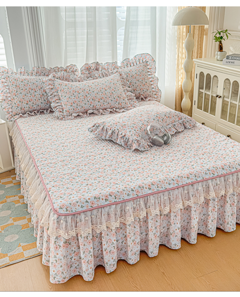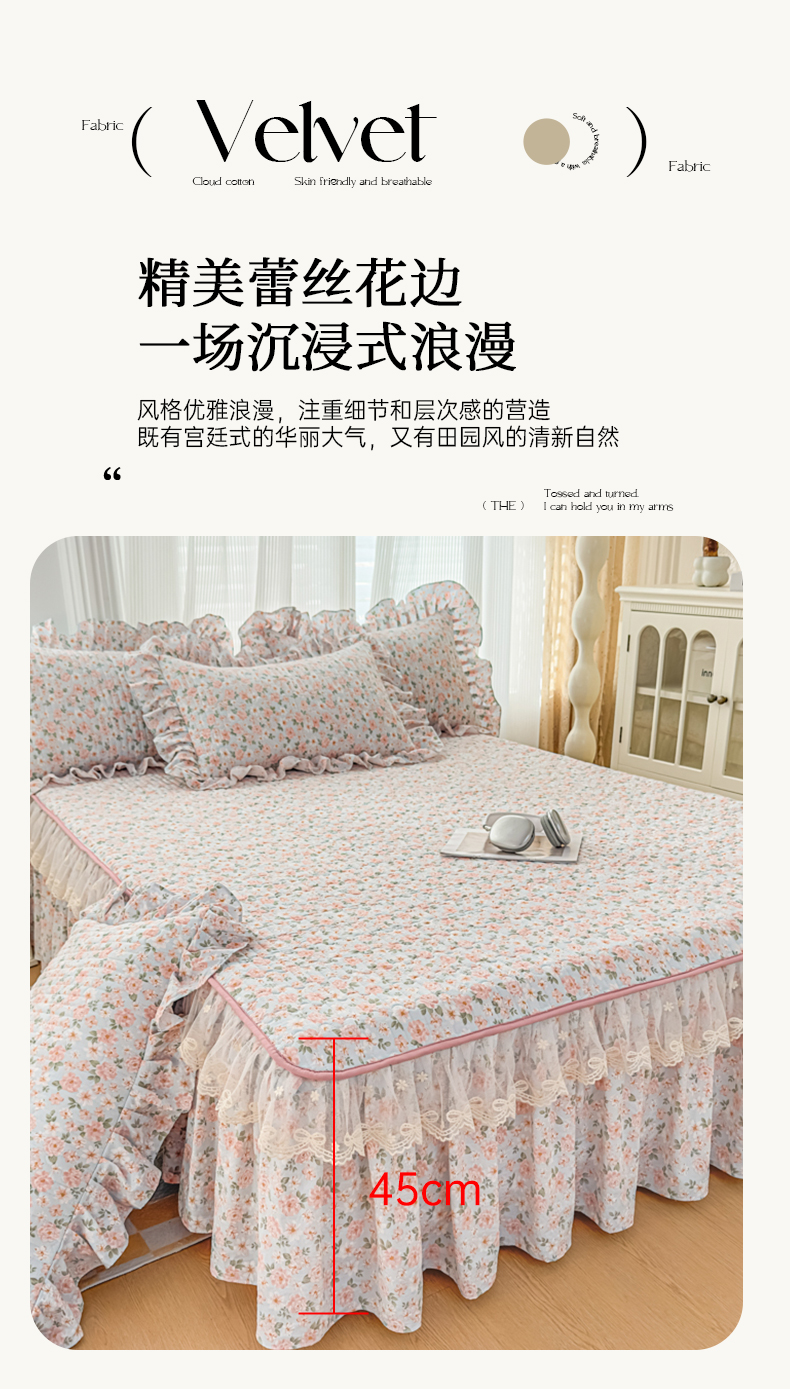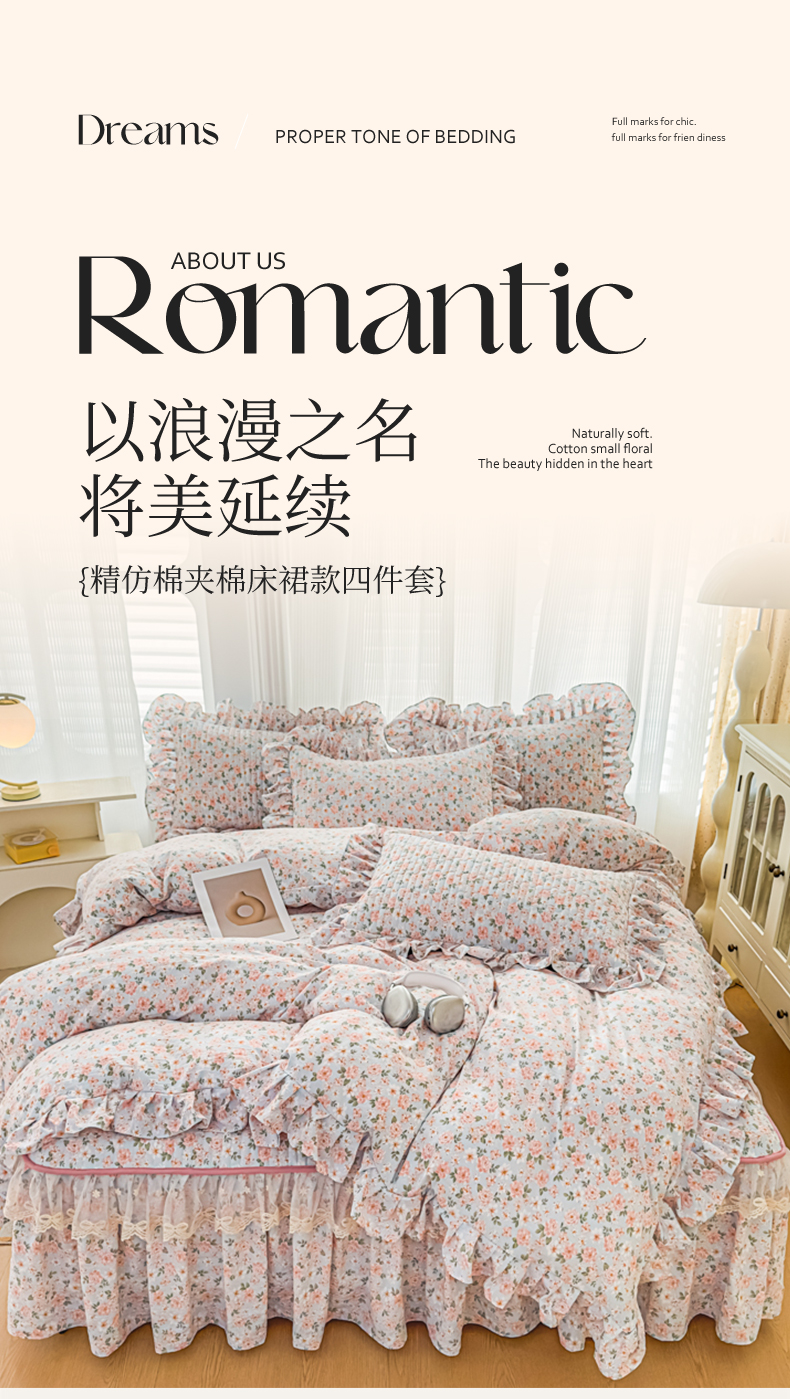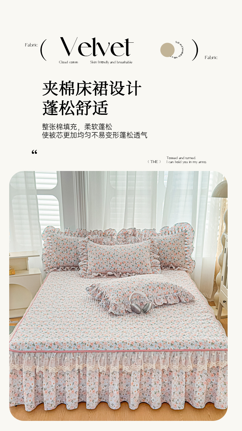 当前位置: 91家纺网 > 商品网购 > 床品套件 > 三件套 > 家之硕家纺 2026新款精仿棉夹棉床裙三件套 遇见浪漫