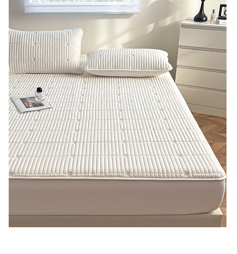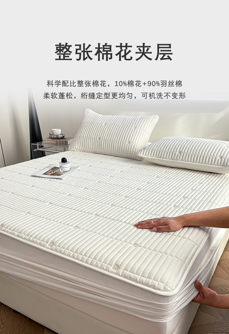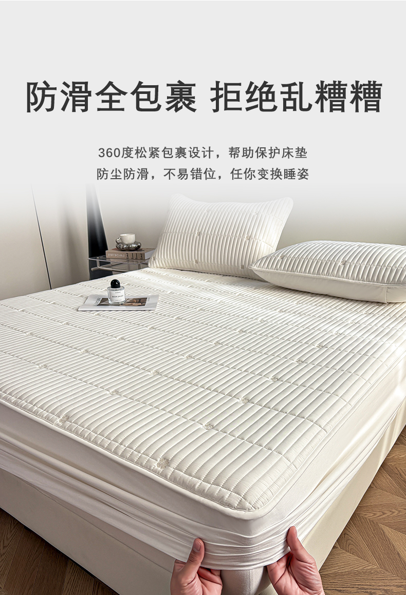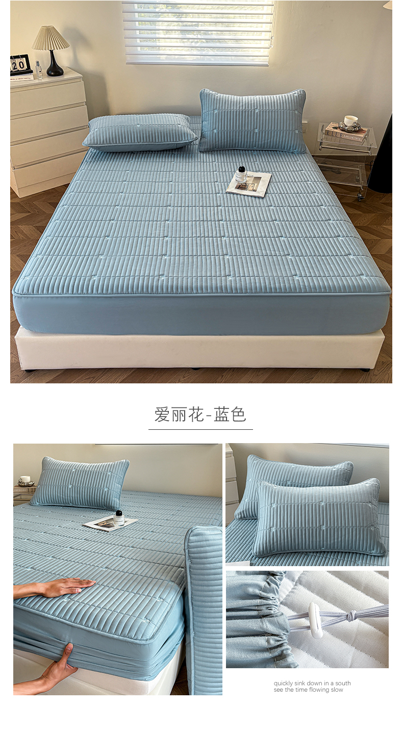 (总)居眠 2025新款防水夹棉床笠-清雅,清雅-粉色,清雅-灰色,清雅-卡其,清雅-绿色,清雅-米白,清雅-深蓝