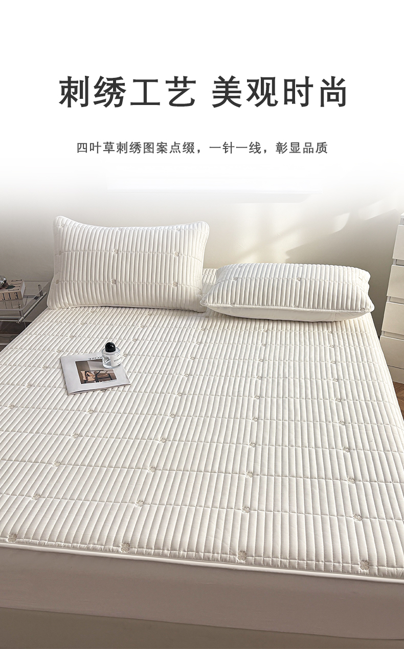 (总)居眠 2024新款防水夹棉大豆床笠-叶链,叶链-白云石,叶链-粉色,叶链-灰色,叶链-卡其,叶链-米白,叶链-雾蓝