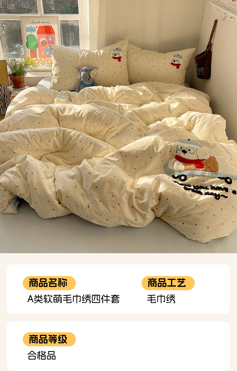 商品名称:(总)沐芷 2026 【提供买家秀】水洗棉四件套毛巾绣A类仿棉床上用品床单被套三件套可爱小清新