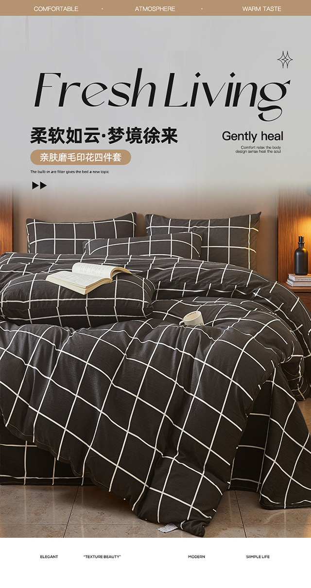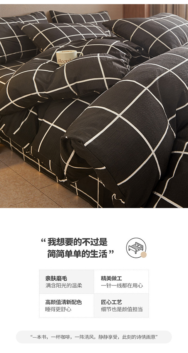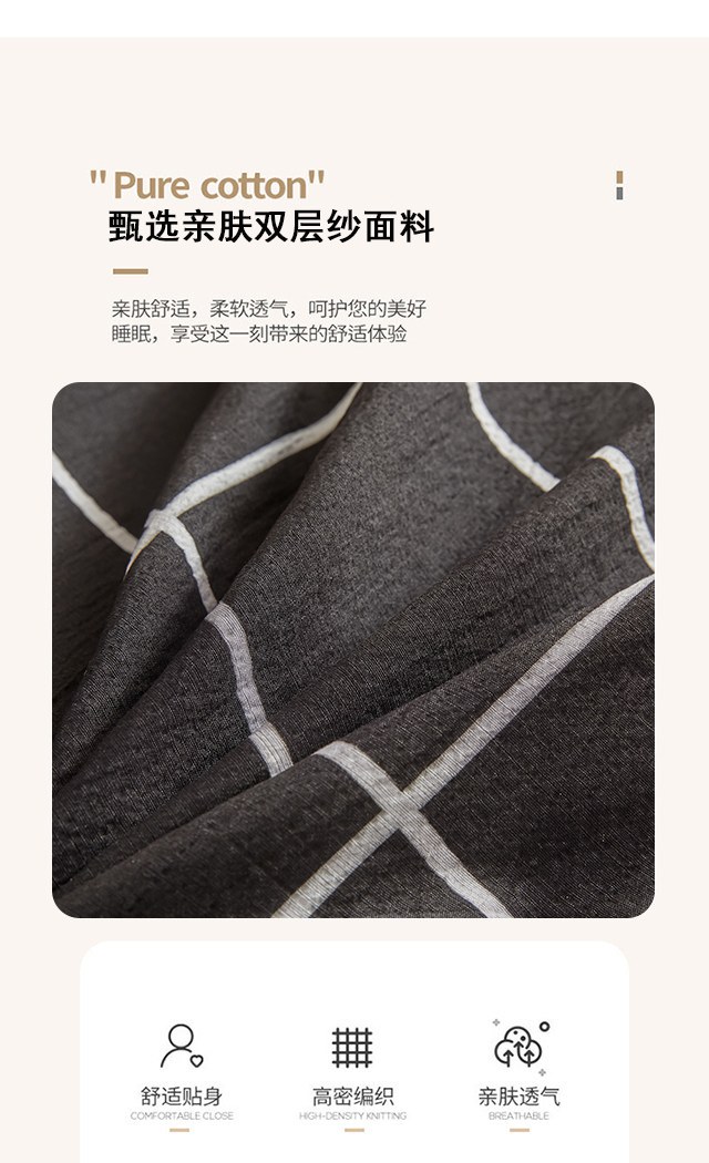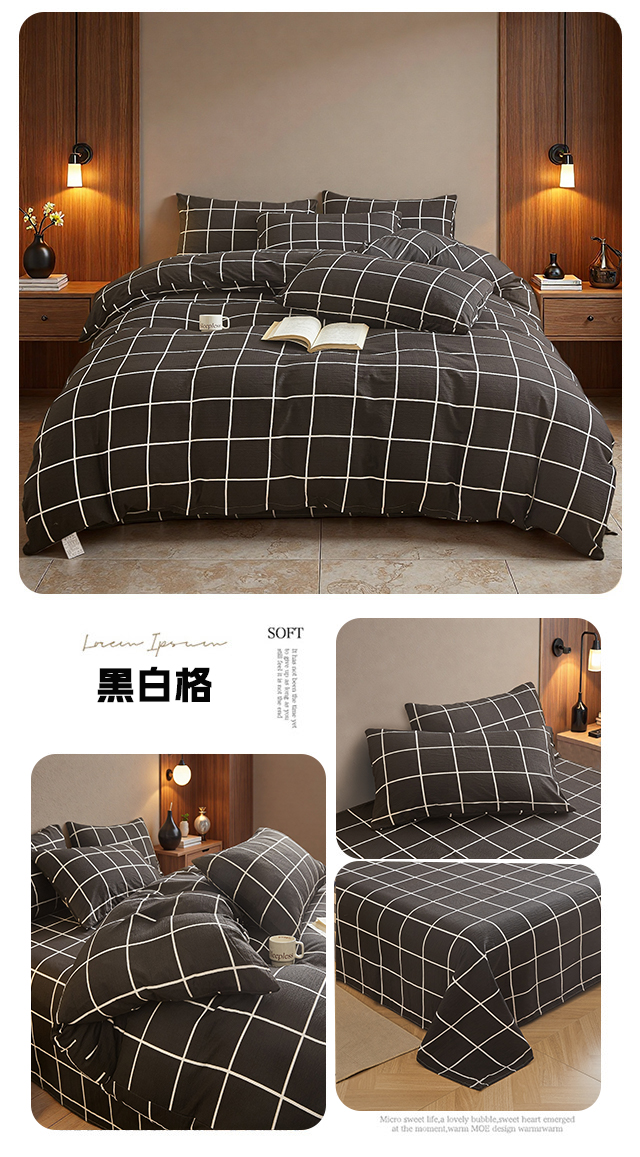 当前位置: 91家纺网 > 商品网购 > 床品套件 > 四件套 > 水洗棉四件套 > 友承家纺 2026最新款水洗棉无印风双层纱木棉四件套被套床单卧室床上用品学生宿舍被罩三件套床单枕套 黑白格