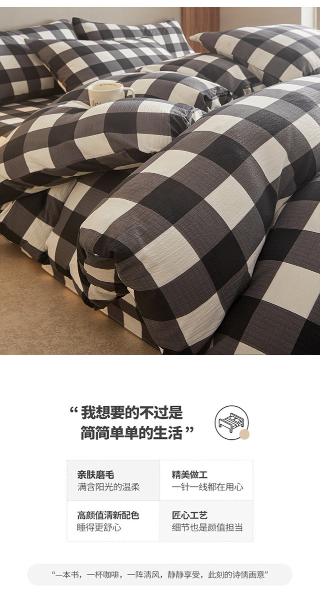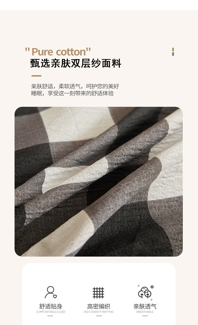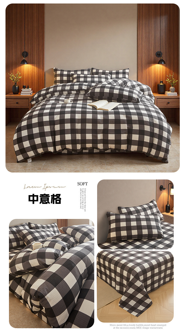 当前位置: 91家纺网 > 商品网购 > 床品套件 > 四件套 > 水洗棉四件套 > 友承家纺 2026最新款水洗棉无印风双层纱木棉四件套被套床单卧室床上用品学生宿舍被罩三件套床单枕套 中意格