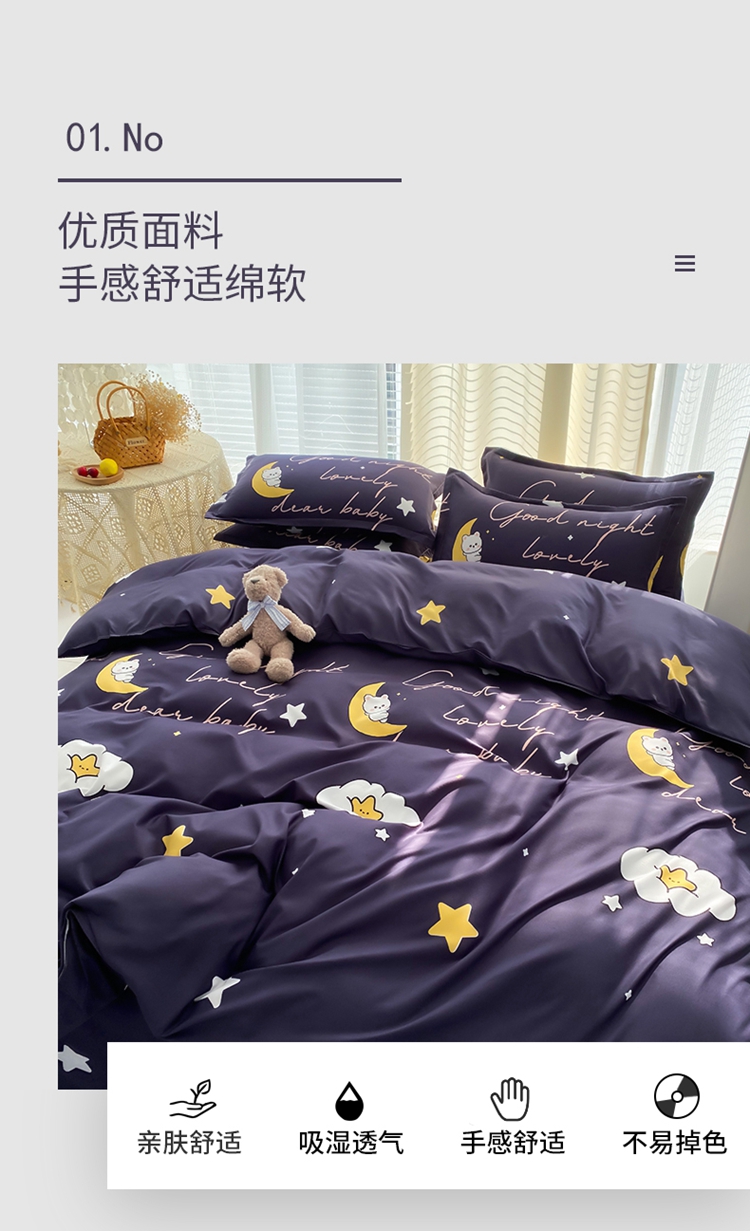 商品名称:友承家纺 2026年新款床上用品学生宿舍套件亲肤磨毛单件被套150x180x220cm芦荟棉被罩200x230 星空之约