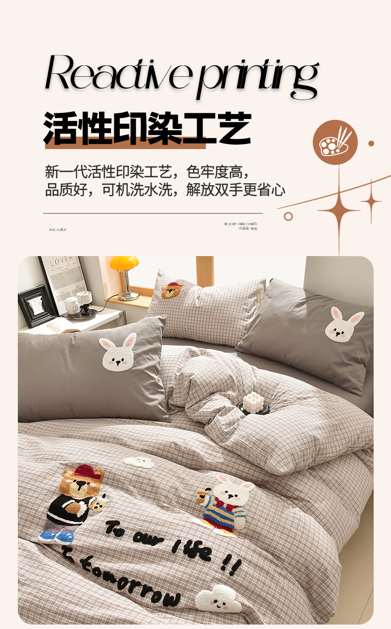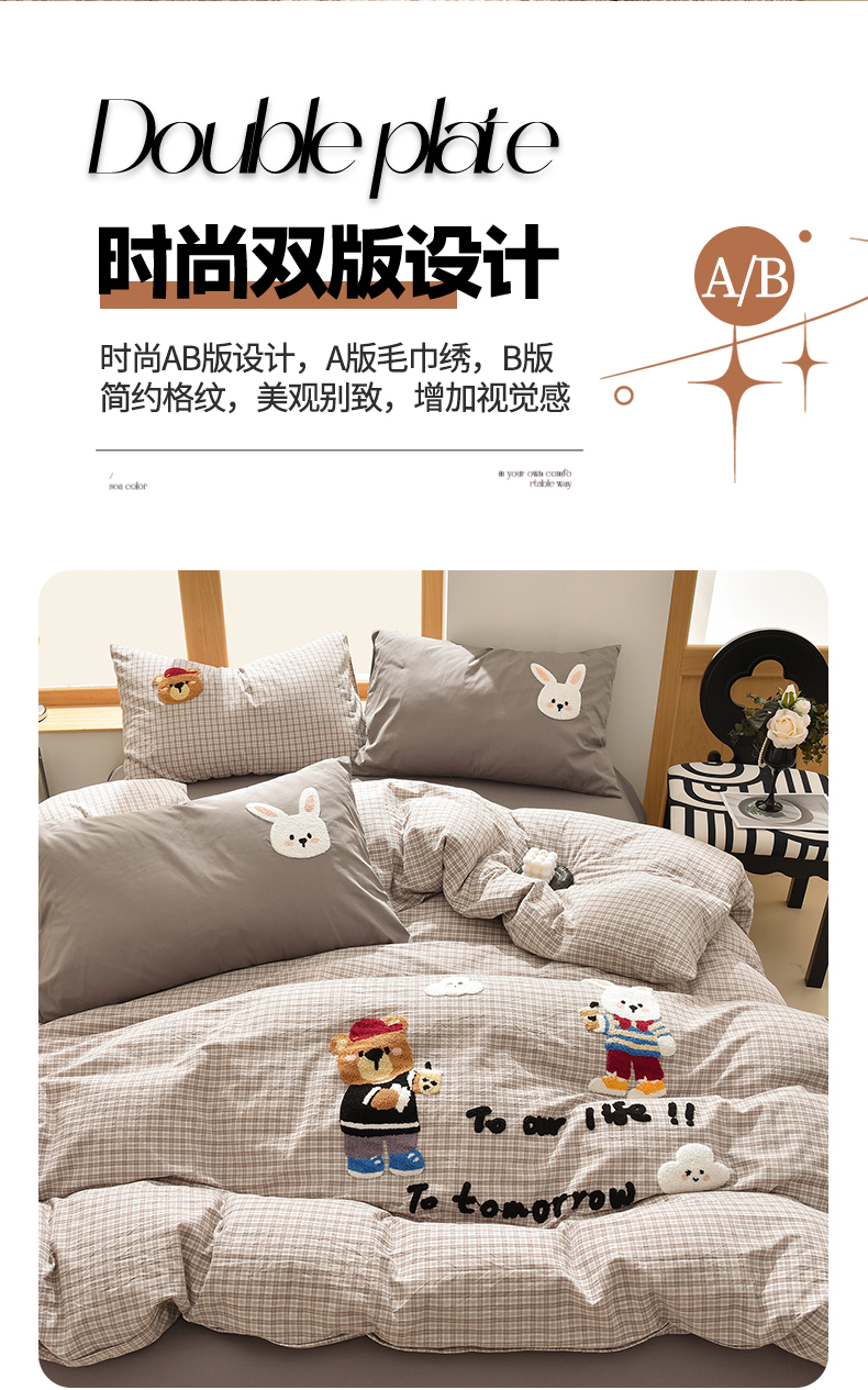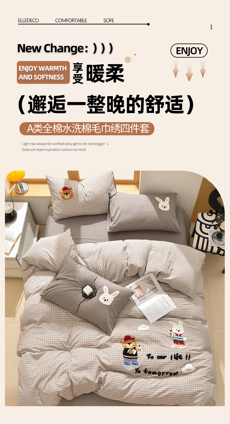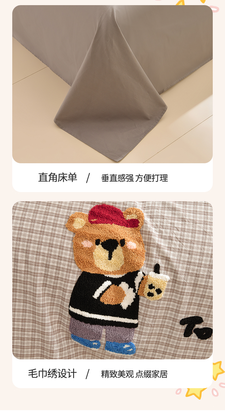 当前位置: 91家纺网 > 商品网购 > 床品套件 > 四件套 > 全棉普通四件套 > 炫拼家纺 2026新款多巴胺系列A类全棉40支水洗棉卡通毛巾绣四件套 多巴胺-快乐伙伴