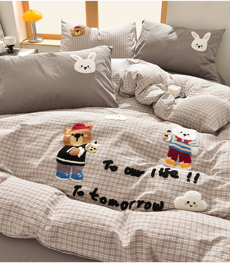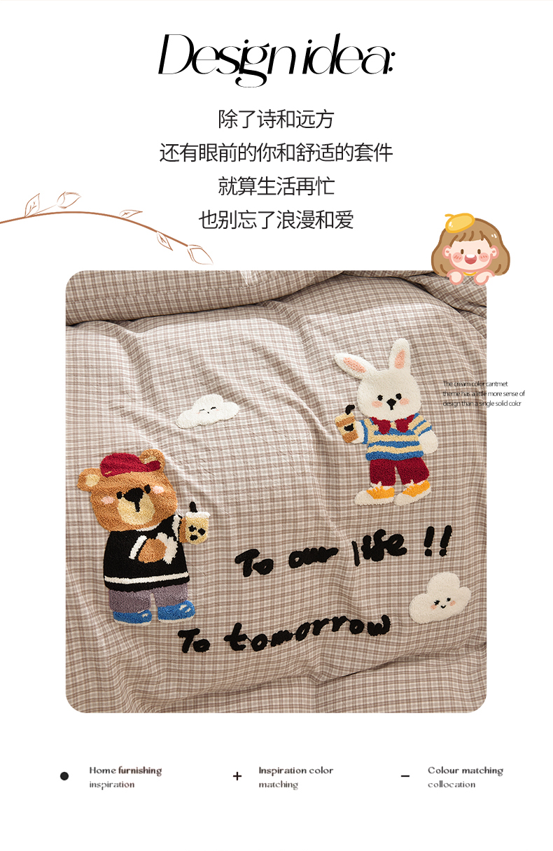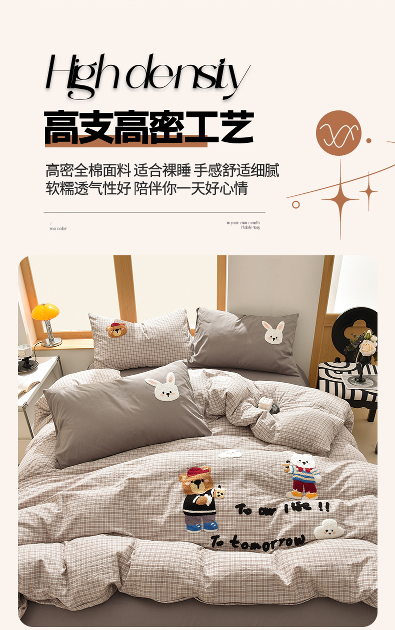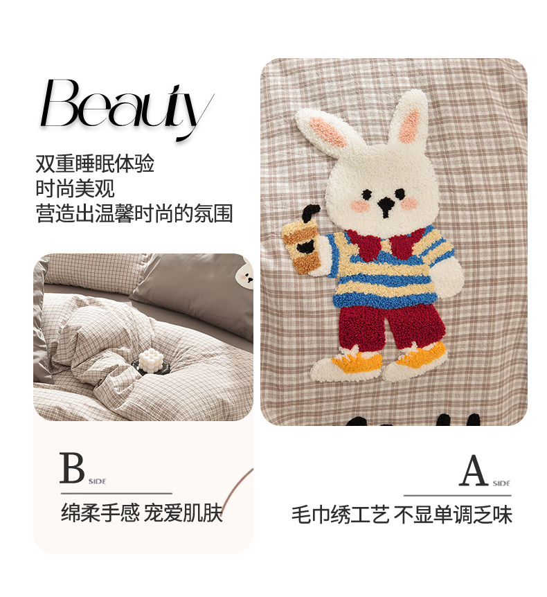 当前位置: 91家纺网 > 商品网购 > 床品套件 > 四件套 > 全棉普通四件套 > 炫拼家纺 2026新款多巴胺系列A类全棉40支水洗棉卡通毛巾绣四件套 多巴胺-快乐伙伴