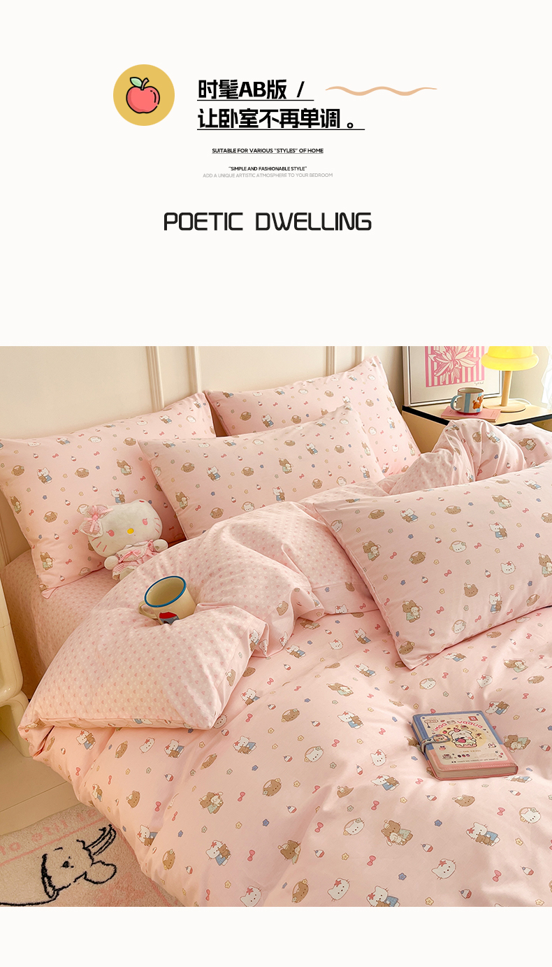 • 91家纺网 家纺一手货源 找家纺 (总)西引力 2026新款40S全棉斜纹印花四件套,绿苹果猫猫,鼻涕狗,快乐伙伴,花枝兔,果子象,告白兔,费尔岛小熊,花边兔,栗子狗,猫吃鱼,生日派对,糖果猫-粉,糖果猫-蓝,甜品猫,跳跳象,童趣小狗,小花猫,小木马,小葡萄,星星魔法