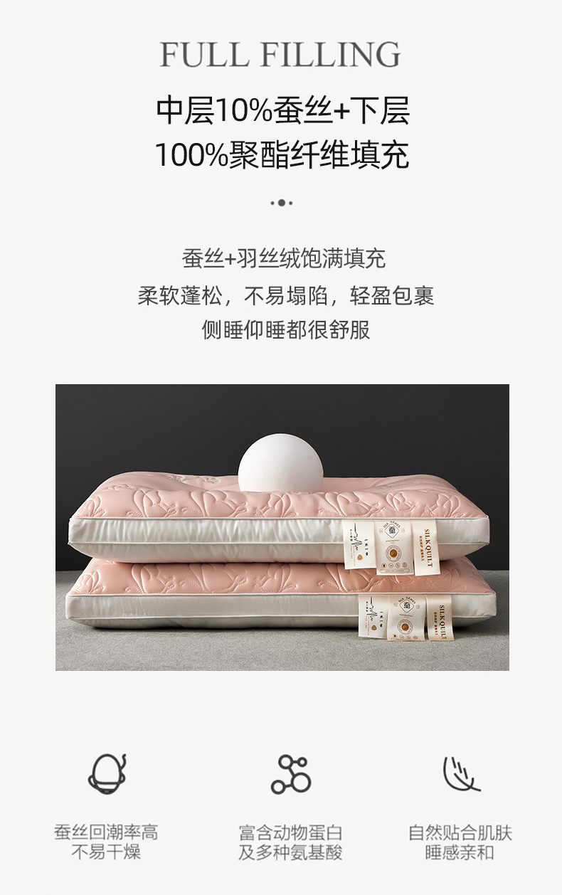 商品名称:寐居家纺 2026新款乳胶蚕丝枕枕头枕芯 乳胶蚕丝枕-粉