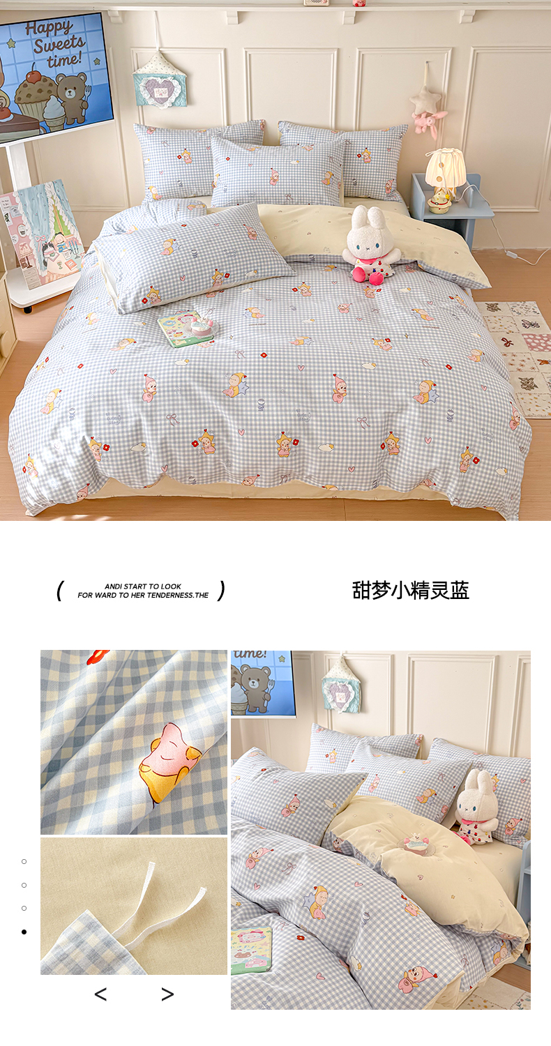 (总)呗旺鹿 2026新款全棉40支12868田园卡通小清新系列四件套,雅柔,蓝叶兔,软糖萌宠,三小只,童话乐园,小熊艺语,樱桃小象,H萝卜兔,L红茶兔兔,L欧包小奶兔,L浅糖兔叽