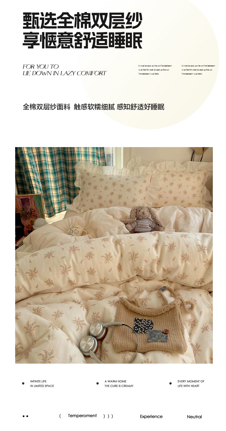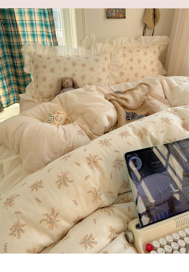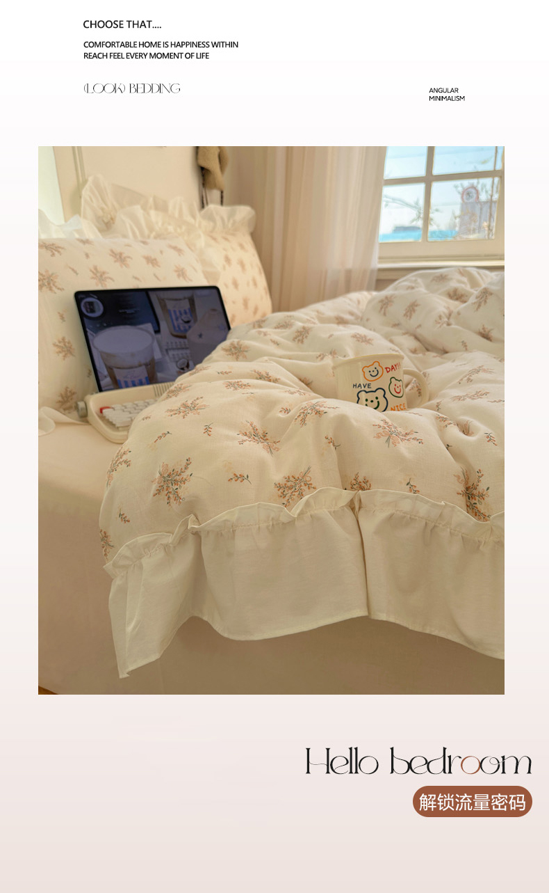 当前位置: 91家纺网 > 商品网购 > 床品套件 > 四件套 > 全棉普通四件套 > 丽涵家纺 2026新款法式立体花边全棉纯棉双层纱四件套 蝴蝶幸运草