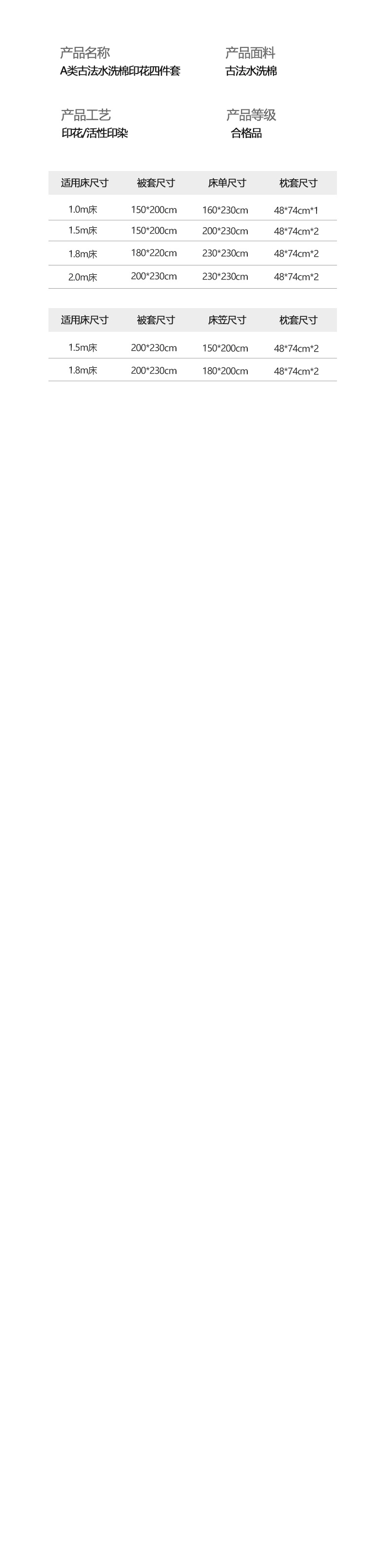 2.0m床单款四件套被套200*230 | ¥52.00 |