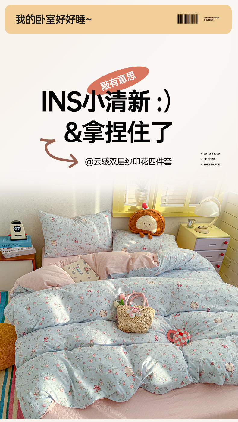 当前位置: 91家纺网 > 商品网购 > 床品套件 > 四件套 > 双层纱四件套 > 云玲时尚 2026新款云感双层纱印花四件套 简夏