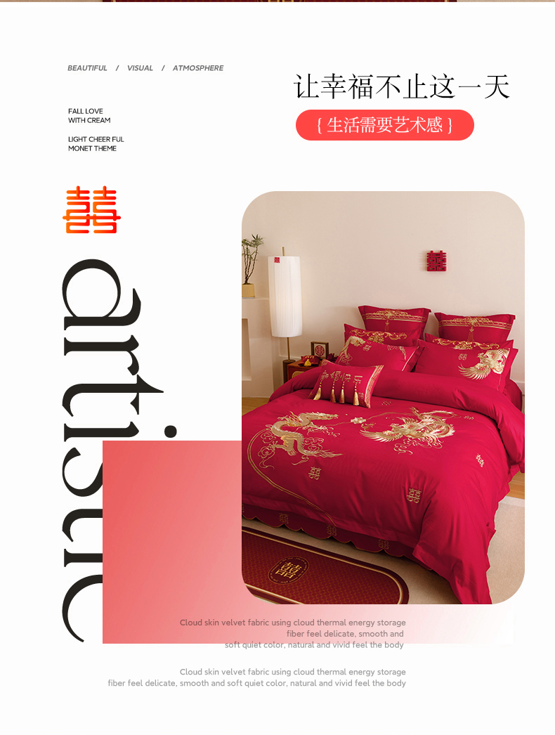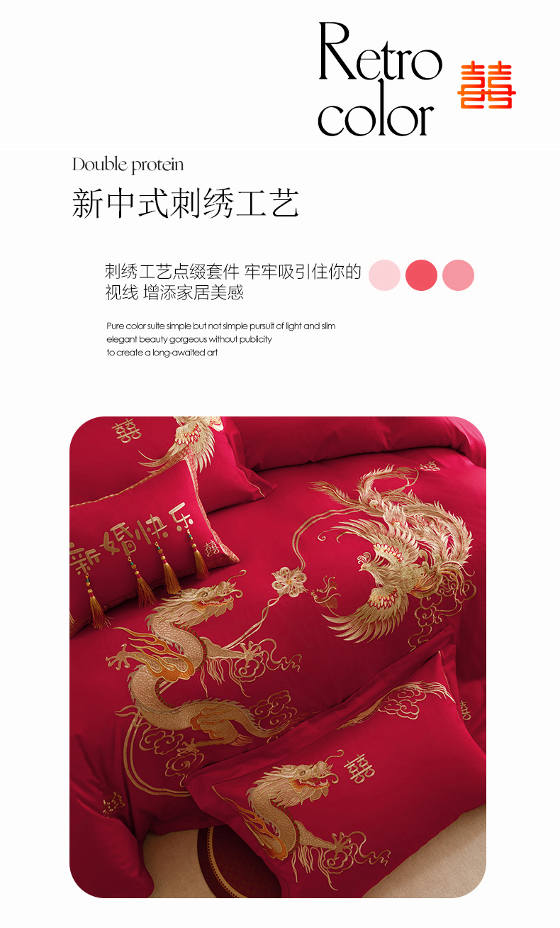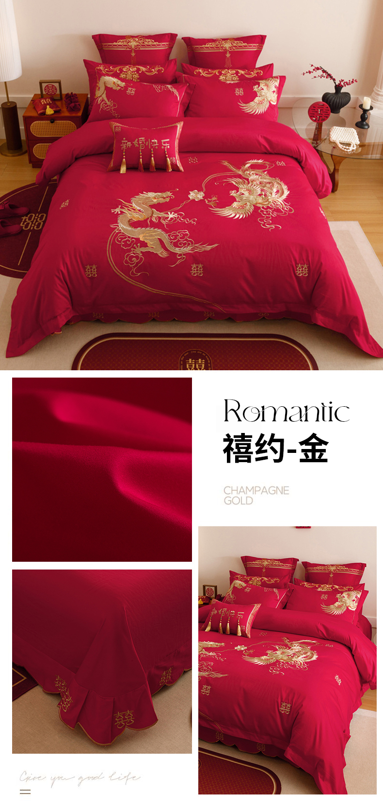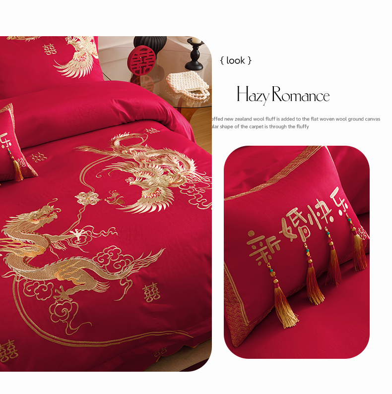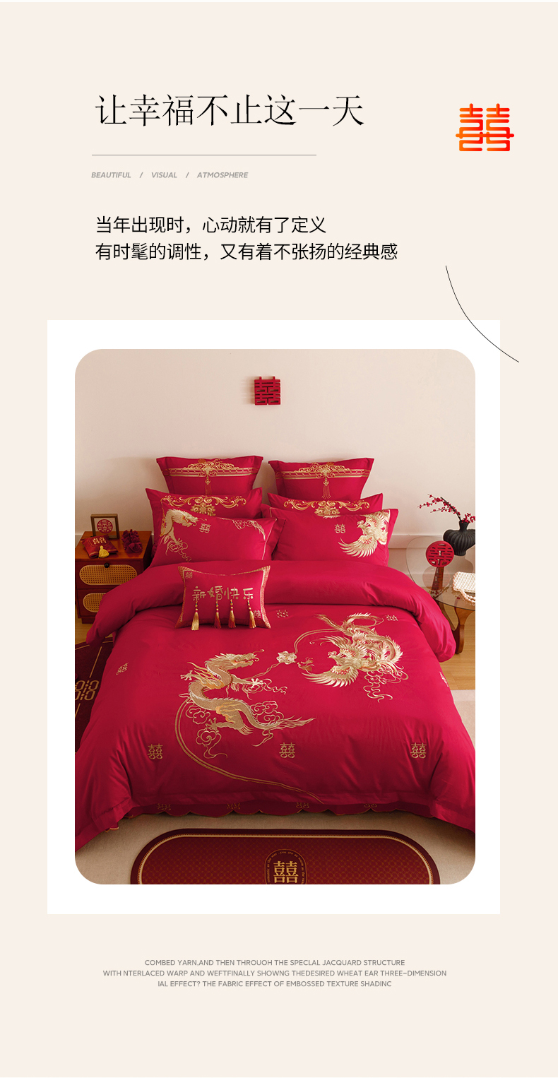 当前位置: 91家纺网 > 商品网购 > 床品套件 > 四件套 > 提花四件套 > 红番天婚庆 2025新款全棉纯棉提花刺绣四件套禧约-金