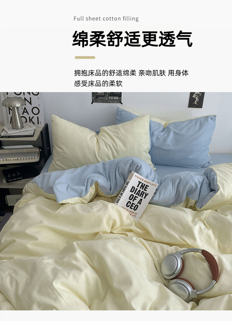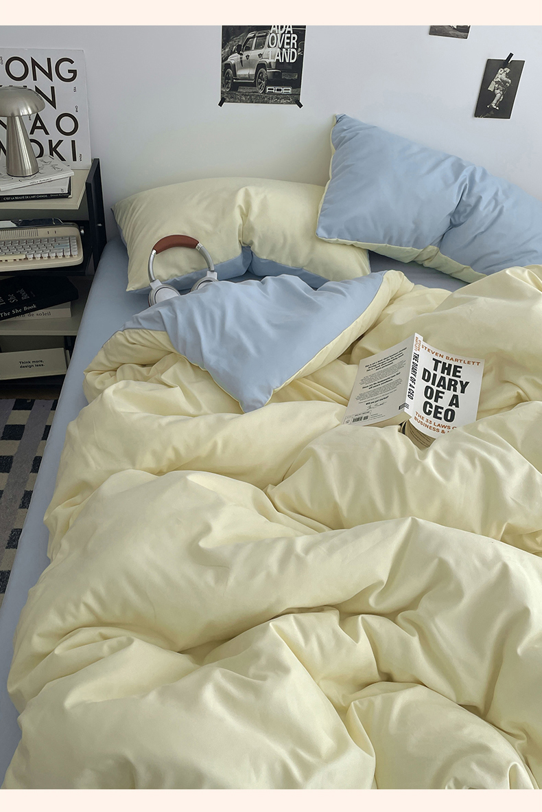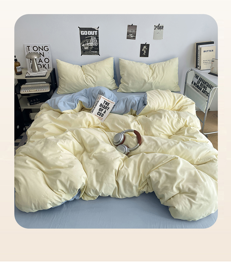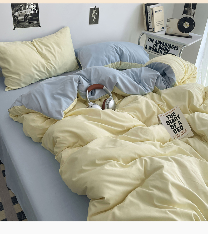 (总)贝拉梦家纺 2025新款纯色磨毛双拼亲肤棉四件套,暗黑骑士,半熟青柠,蓝色星河,奶油香草,乌梅子酱