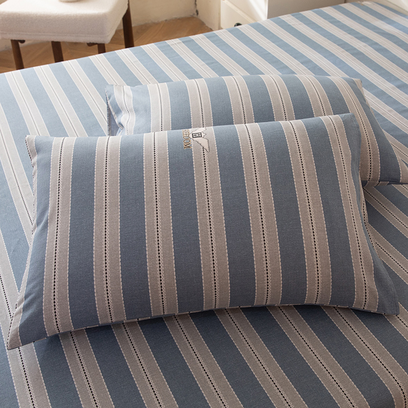 商品名称:八十八家纺 2026新款无印风全棉纯棉斜纹条格单枕套枕套单件单品枕套 山川
