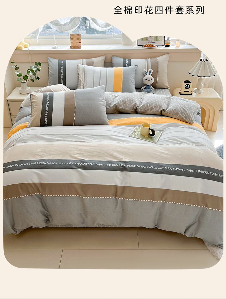 当前位置: 91家纺网 > 商品网购 > 床品套件 > 四件套 > 全棉普通四件套 > 爱诗诺家纺 2026新款100%全棉纯棉印花四件套【送货上门.多少都可以送】 安逸时光灰