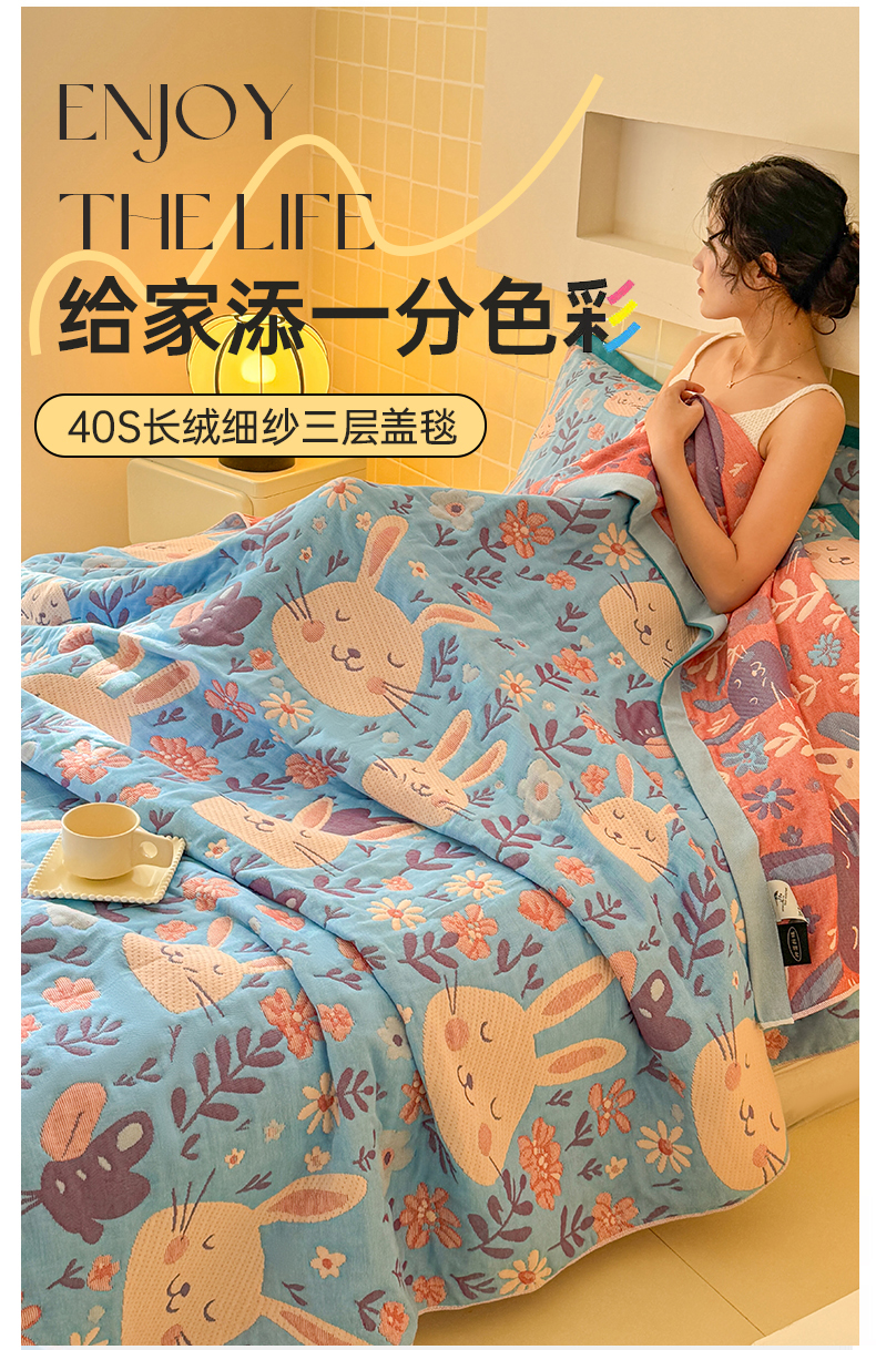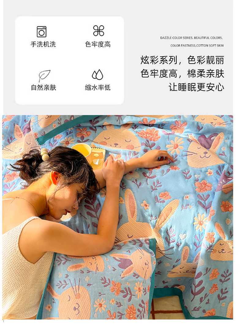 商品名称:(总)朴尔家纺-毛巾被 2026新款彩棉云柔三层纱布毛巾被三件套盖毯