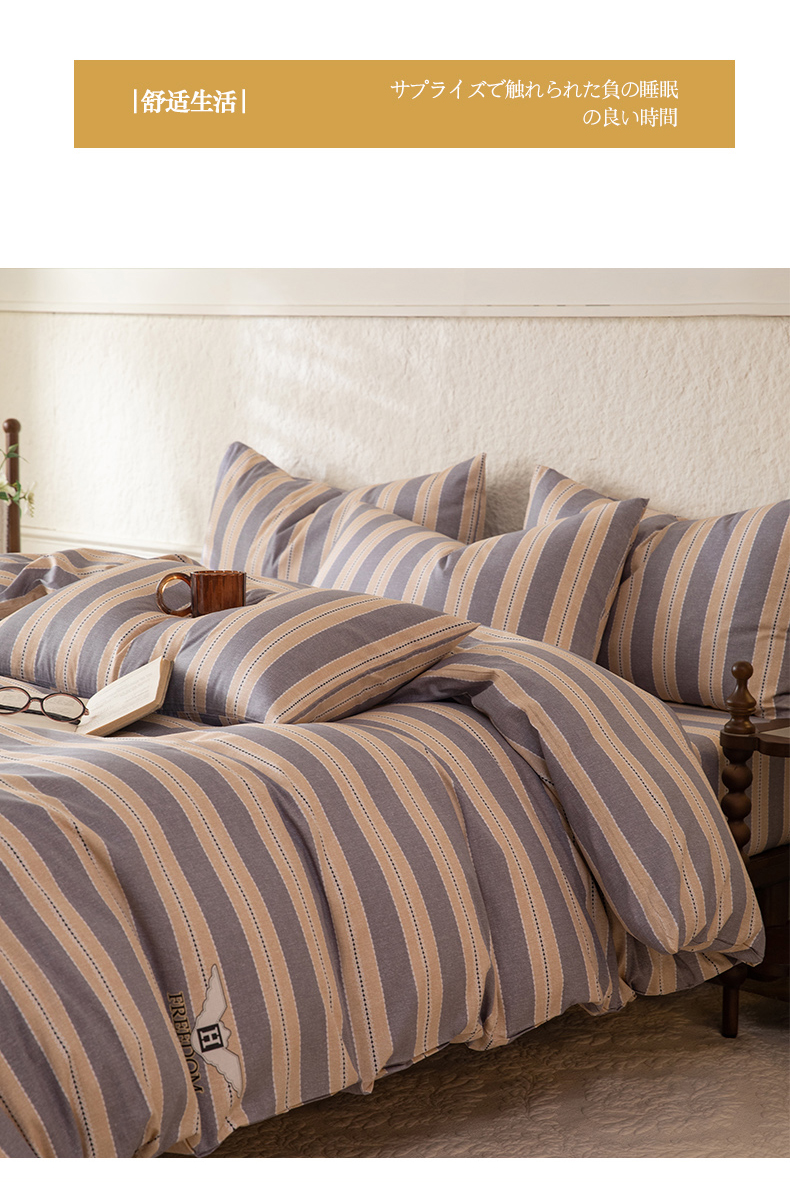 当前位置: 91家纺网 > 商品网购 > 床品套件 > 四件套 > 全棉普通四件套 > 八十八家纺 2026新款无印风全棉纯棉斜纹条格四件套 青居