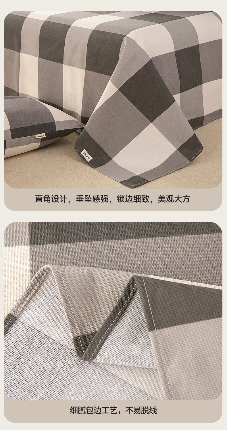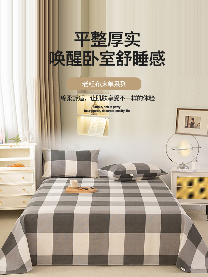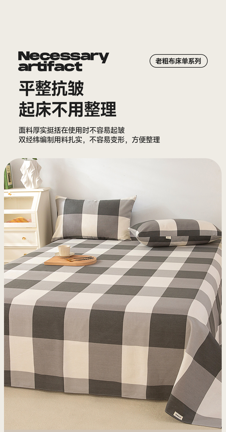 • 91家纺网 家纺一手货源 找家纺 首爱家纺 2026新款原棉标印花老粗布床单 灰格