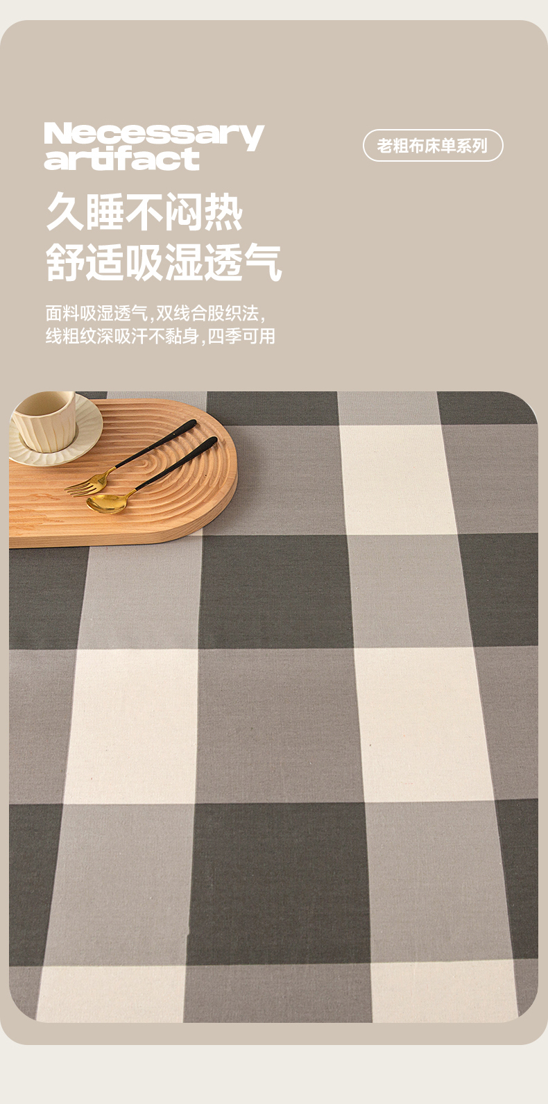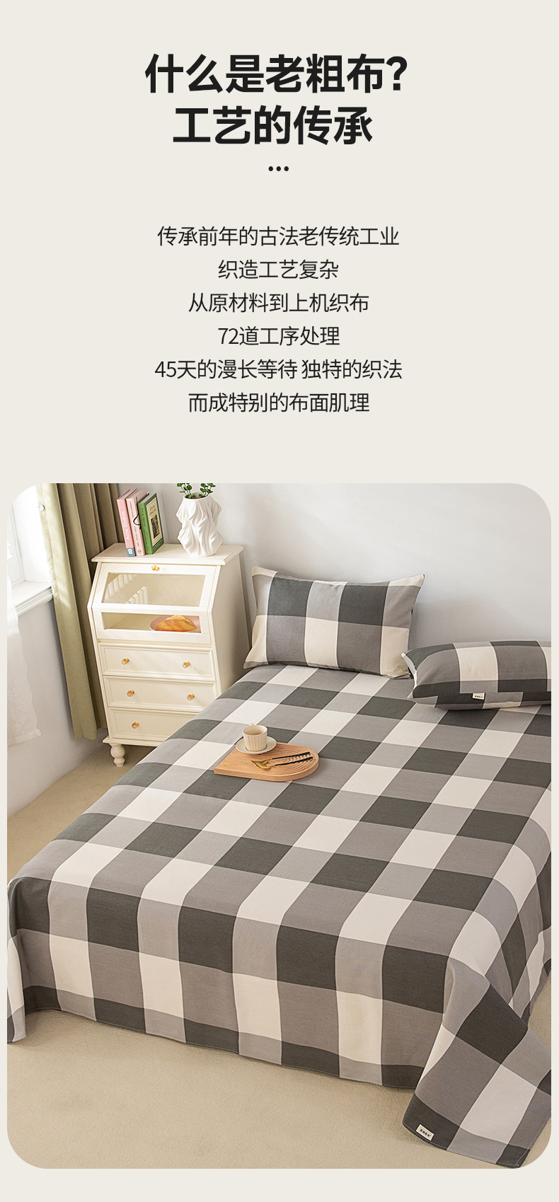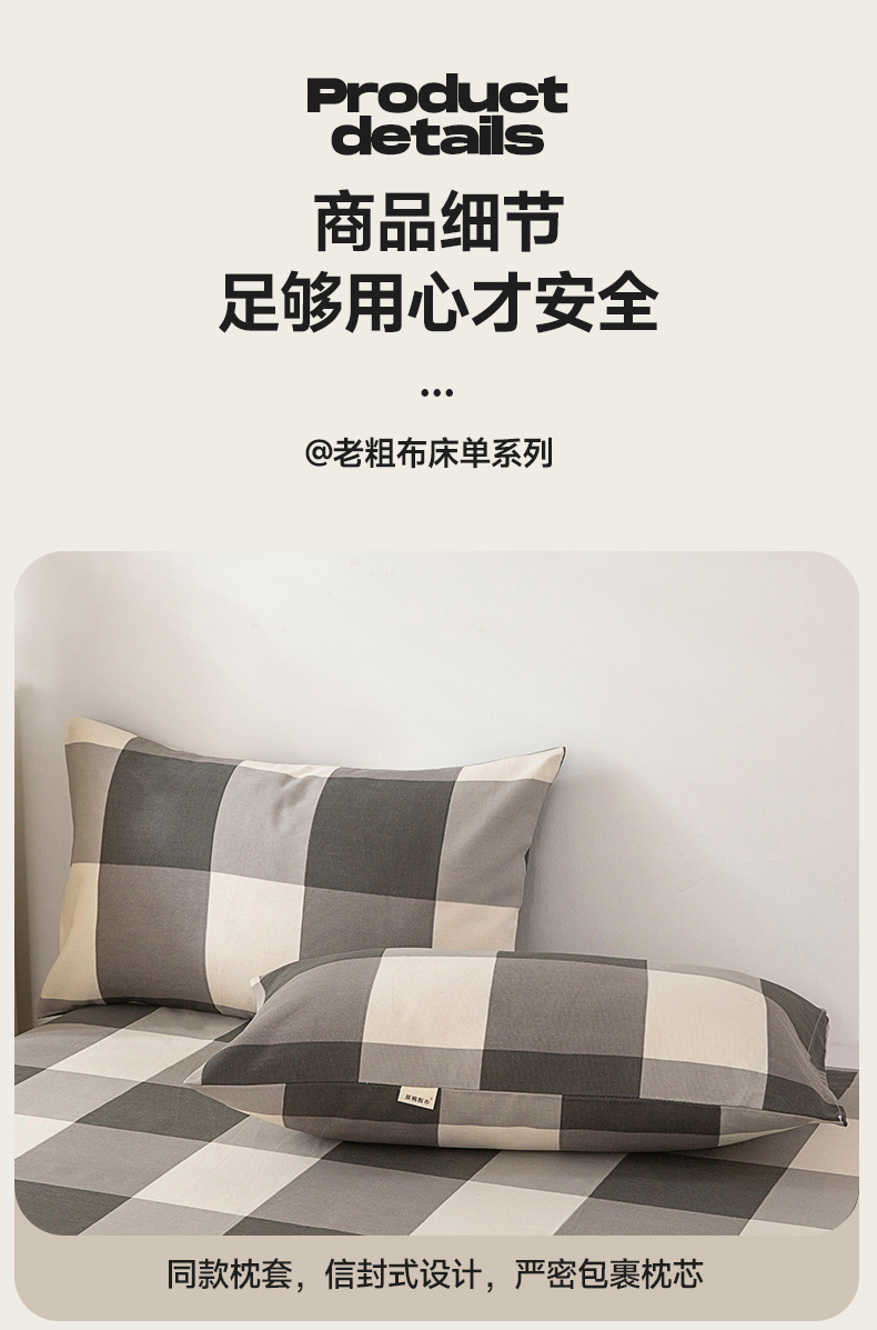 • 91家纺网 家纺一手货源 找家纺 首爱家纺 2026新款原棉标印花老粗布床单 灰格