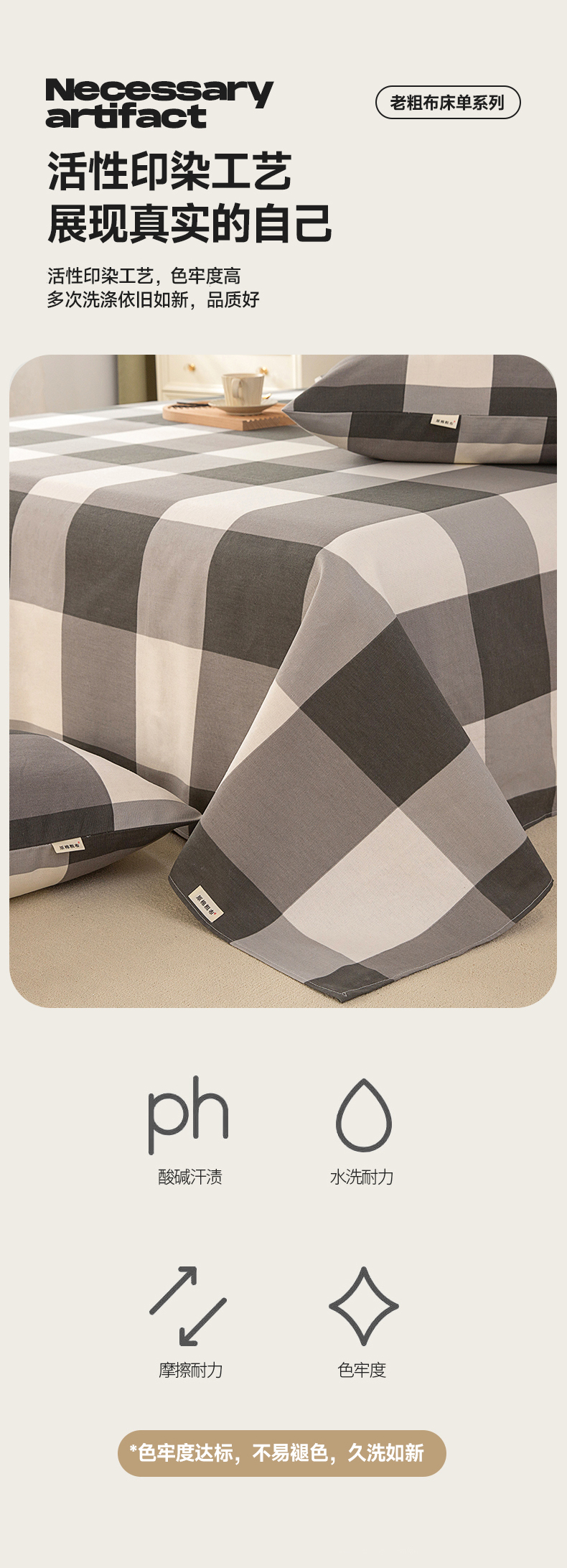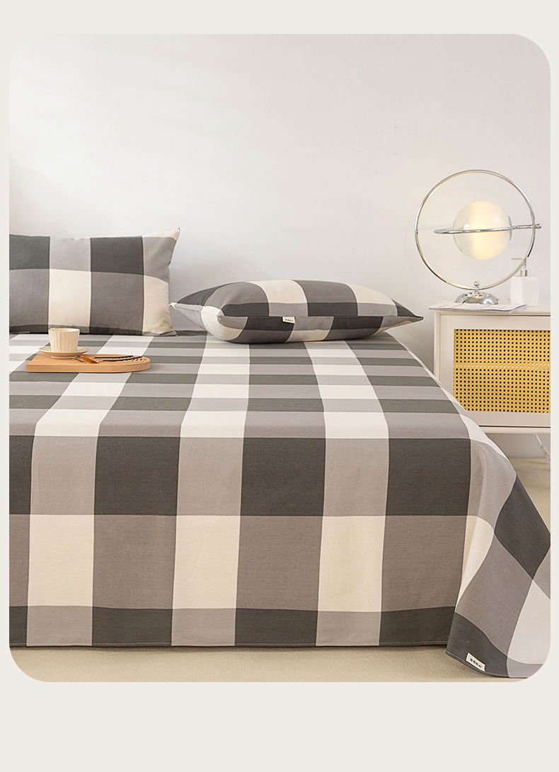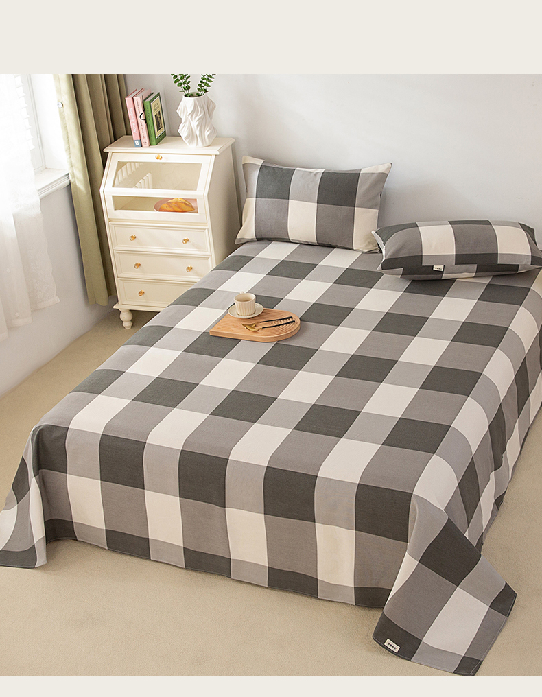 首爱家纺 2026新款原棉标印花老粗布床单 灰格