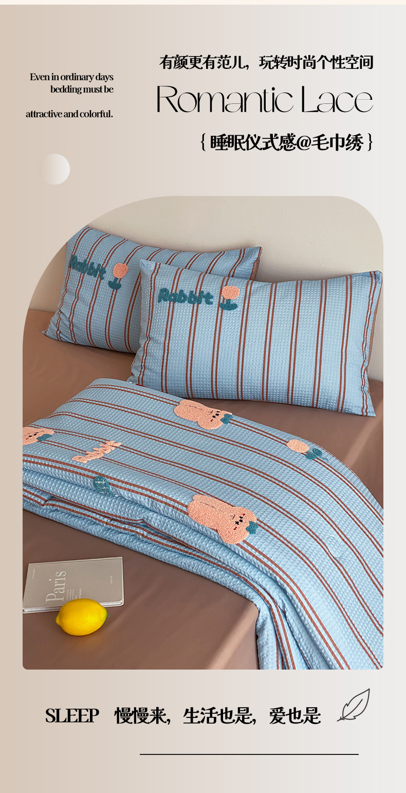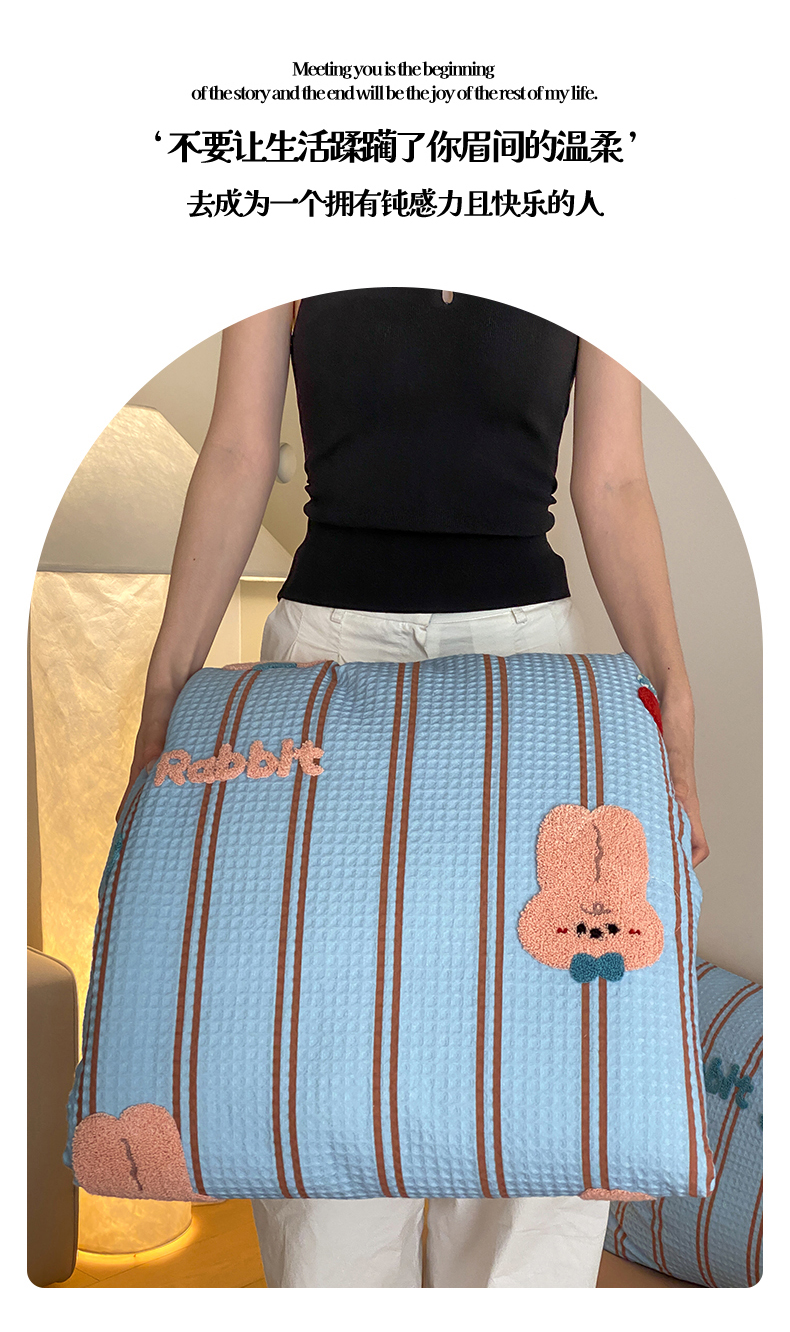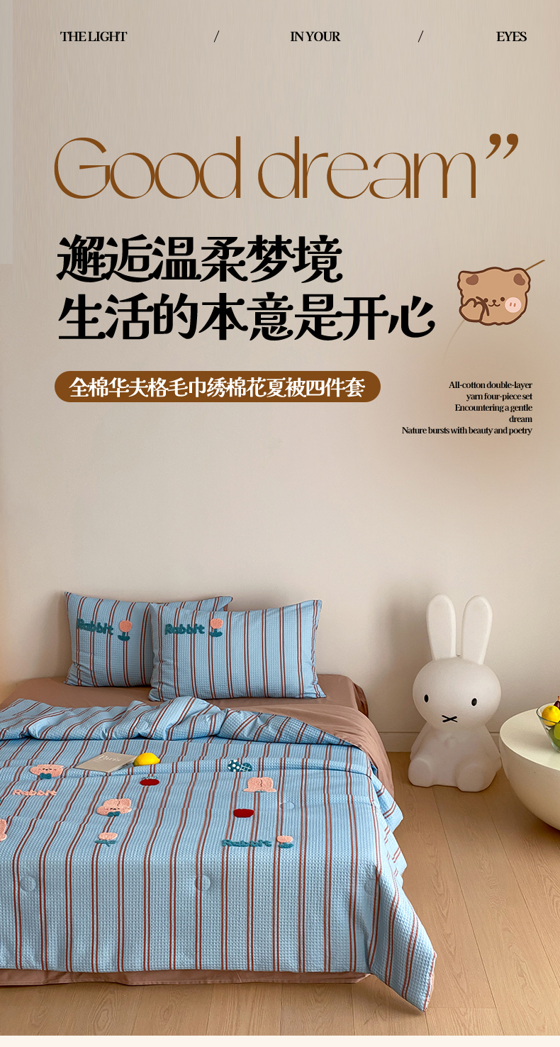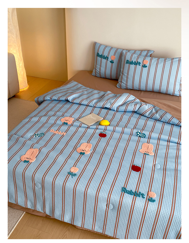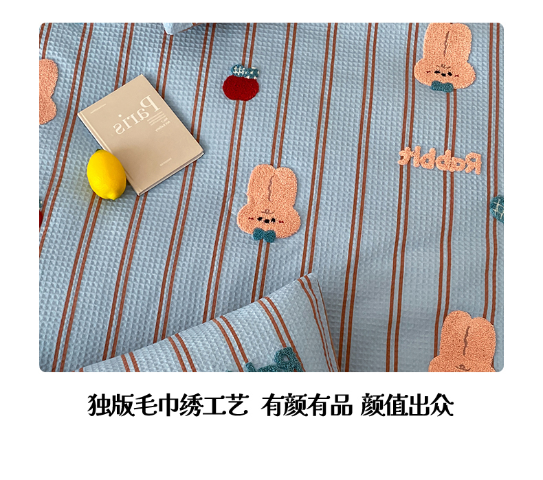 当前位置: 91家纺网 > 商品网购 > 被子 > 夏被 > 鸣升家纺 2026新款a类全棉华夫格贴布绣全棉夏被四件套空调被芯夏凉被棉花被 平安兔