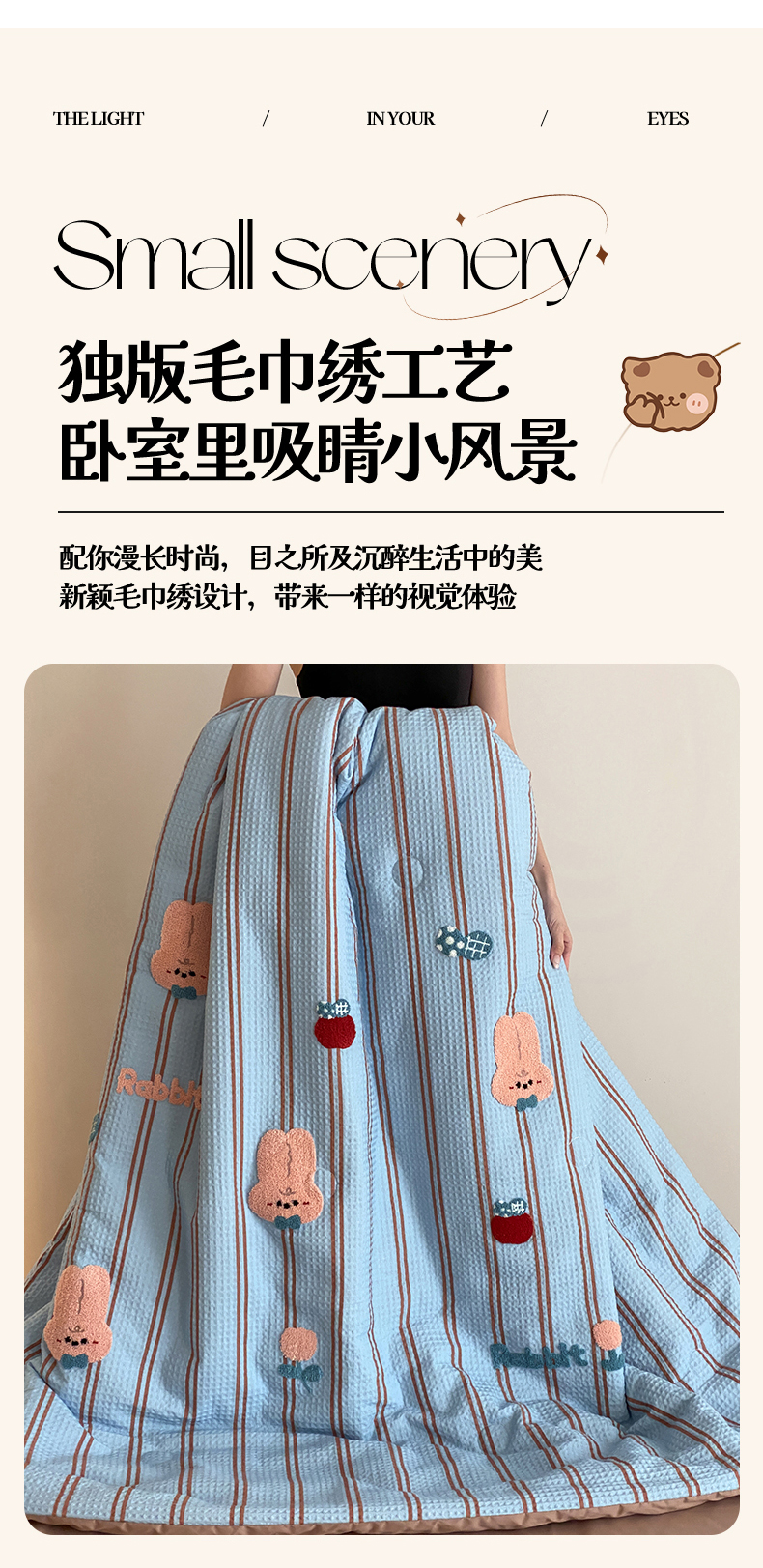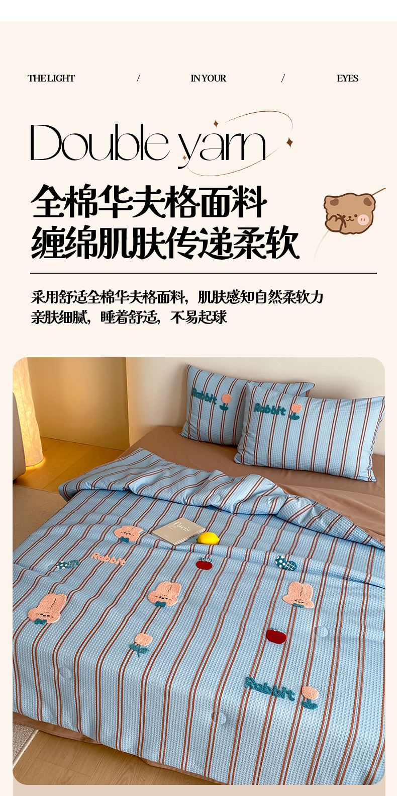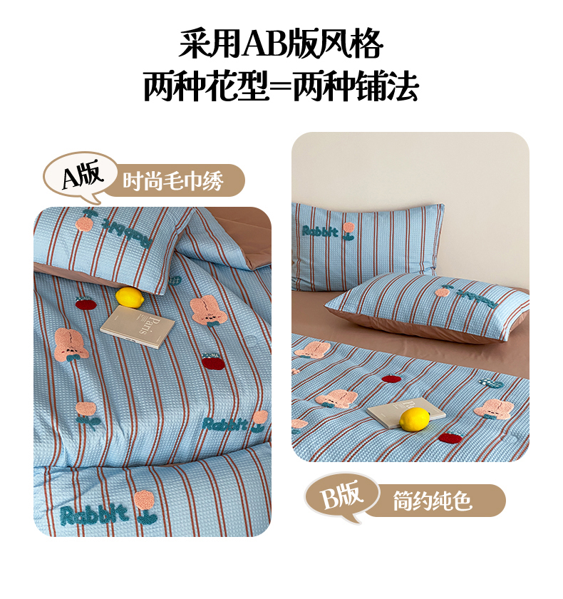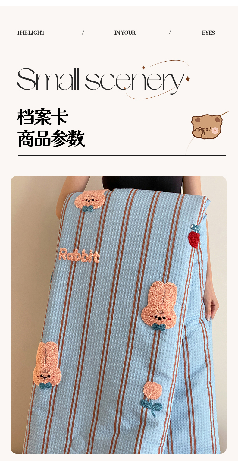 • 91家纺网 家纺一手货源 找家纺 鸣升家纺 2026新款a类全棉华夫格贴布绣全棉夏被四件套空调被芯夏凉被棉花被 平安兔