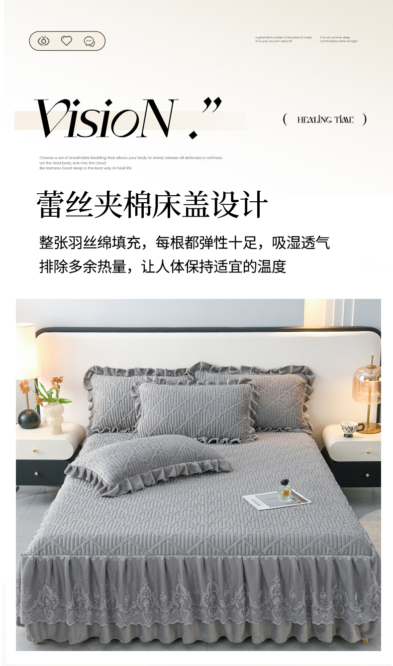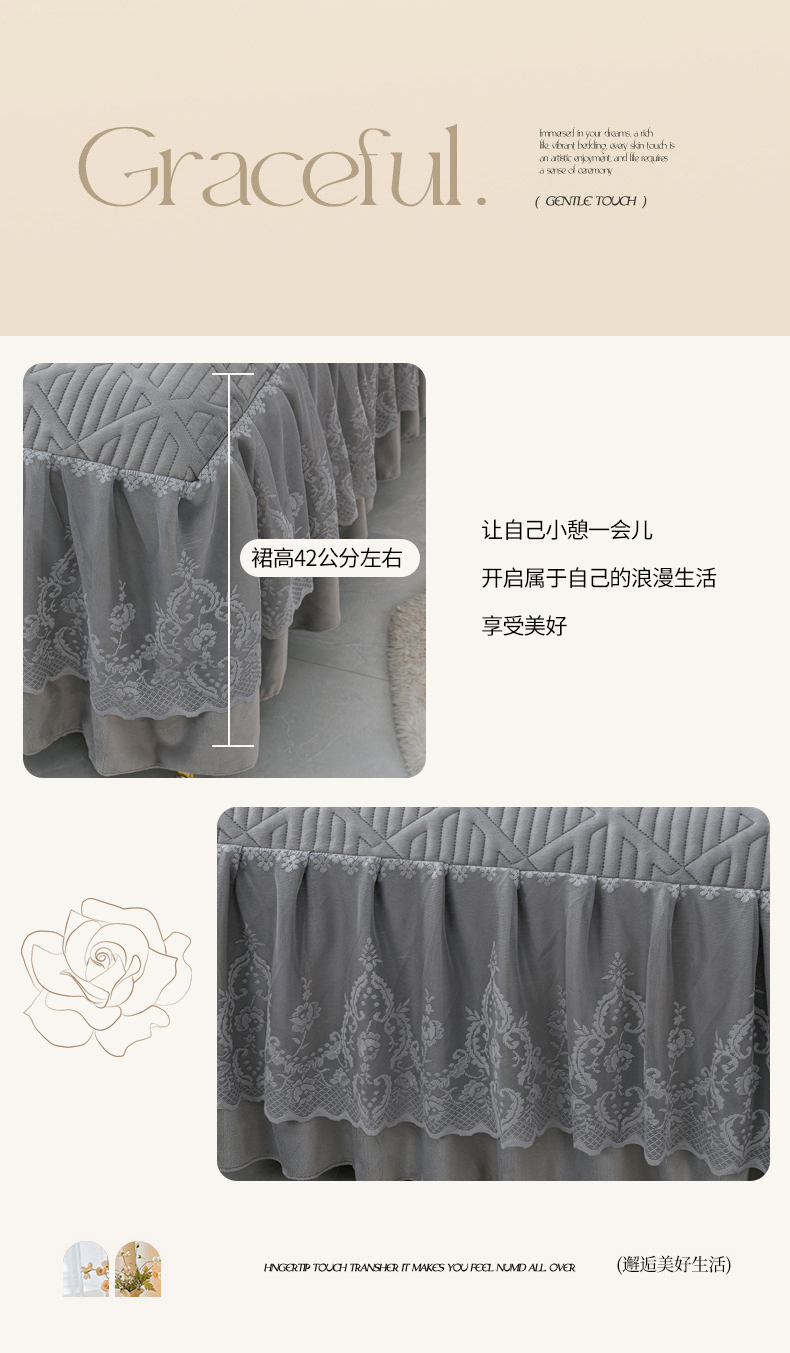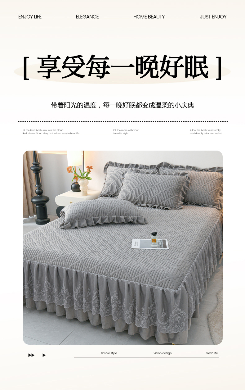 当前位置: 91家纺网 > 商品网购 > 床品套件 > 四件套 > 牛奶绒四件套 > 优家居工厂店 2026新品240克高克重牛奶绒韩版牛奶绒夹棉床裙四件套床裙三件套直播热款-东方韵 东方韵-灰色