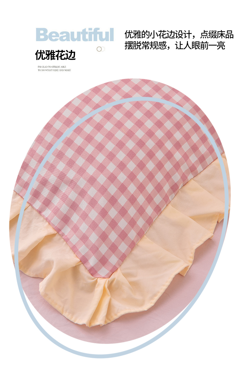 当前位置: 91家纺网 > 商品网购 > 床品套件 > 四件套 > 水洗棉四件套 > 优家居工厂店 2026新款A类超柔舒适水洗棉韩式花边四件套小清新格子纯色学生三件套 奶油-粉