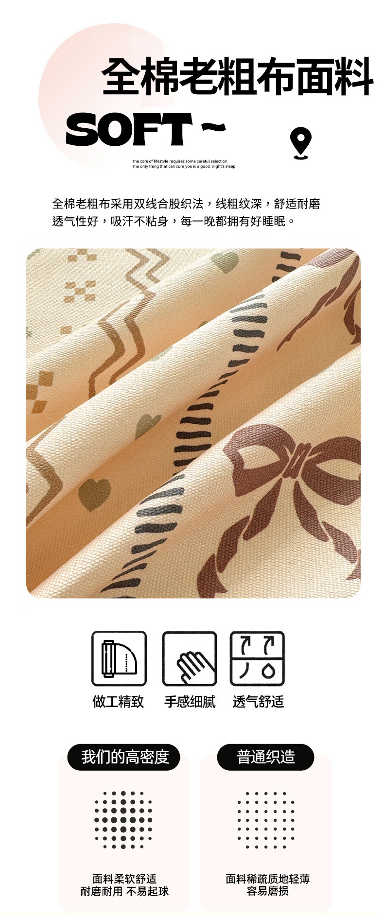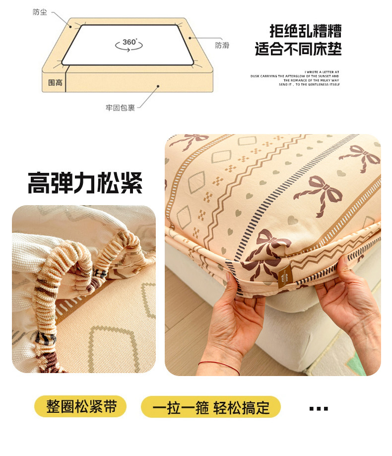 商品名称:女子家纺 2026新款全棉老粗布床笠 幸运结
