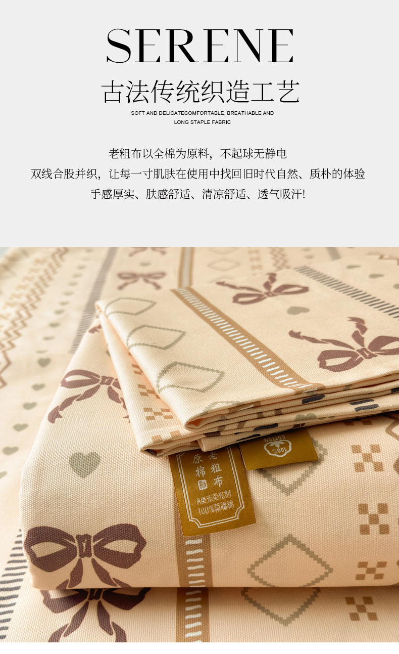商品名称:女子家纺 2026新款全棉老粗布床单 幸运结