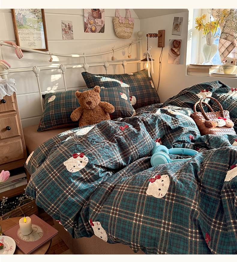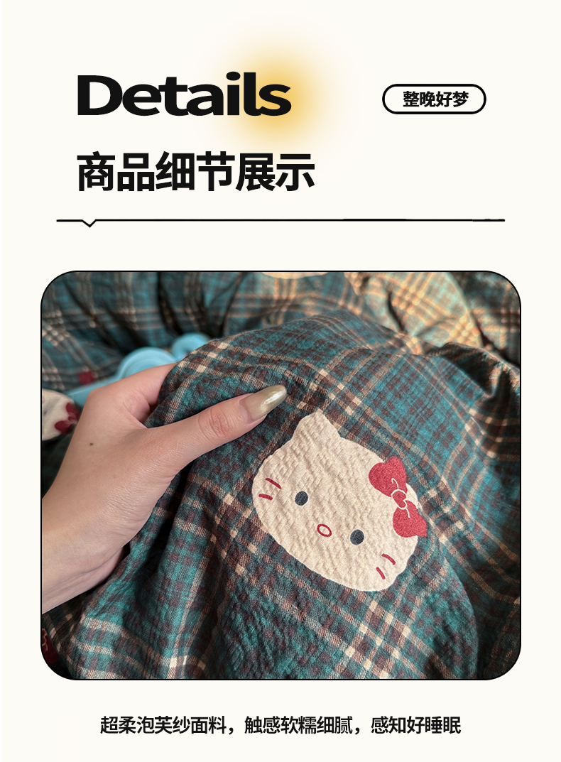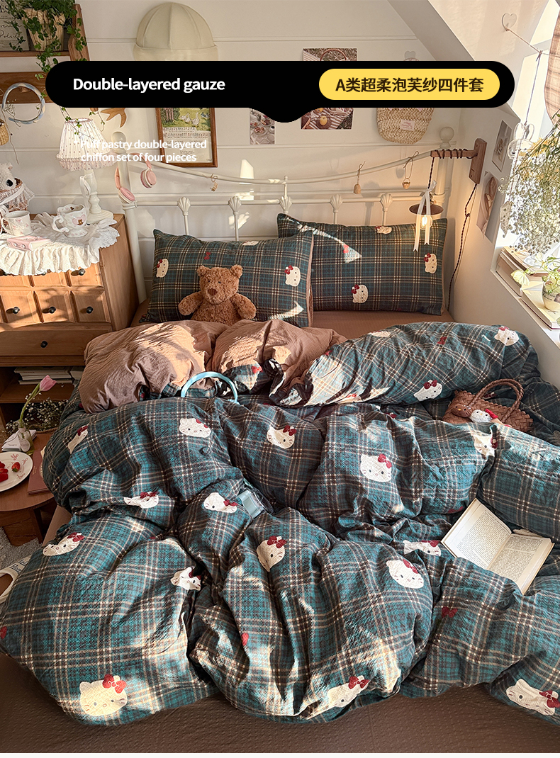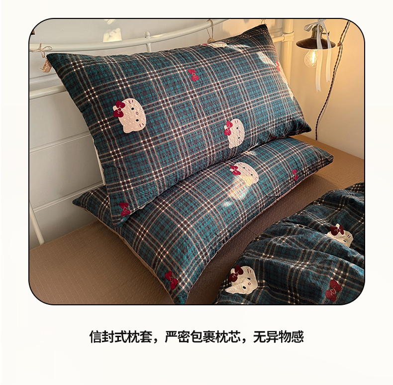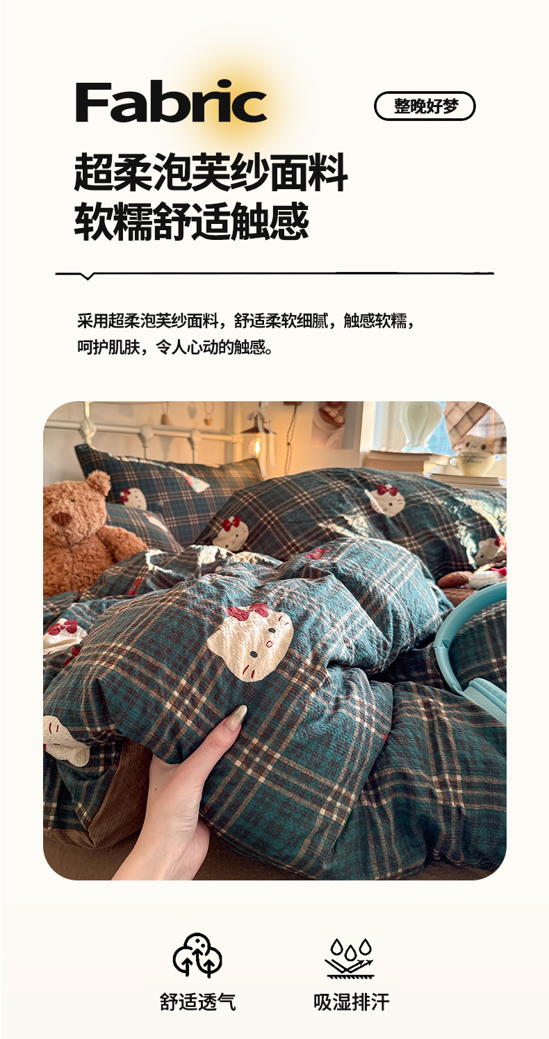 当前位置: 91家纺网 > 商品网购 > 床品套件 > 四件套 > 其它四件套 > 初念 2026新款A类高品质110克超柔泡芙纱四件套 绿格小猫
