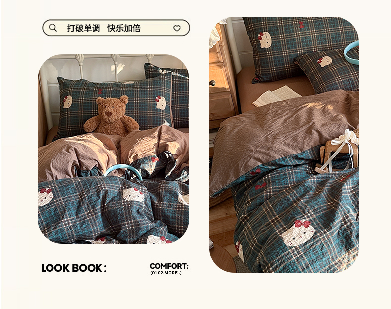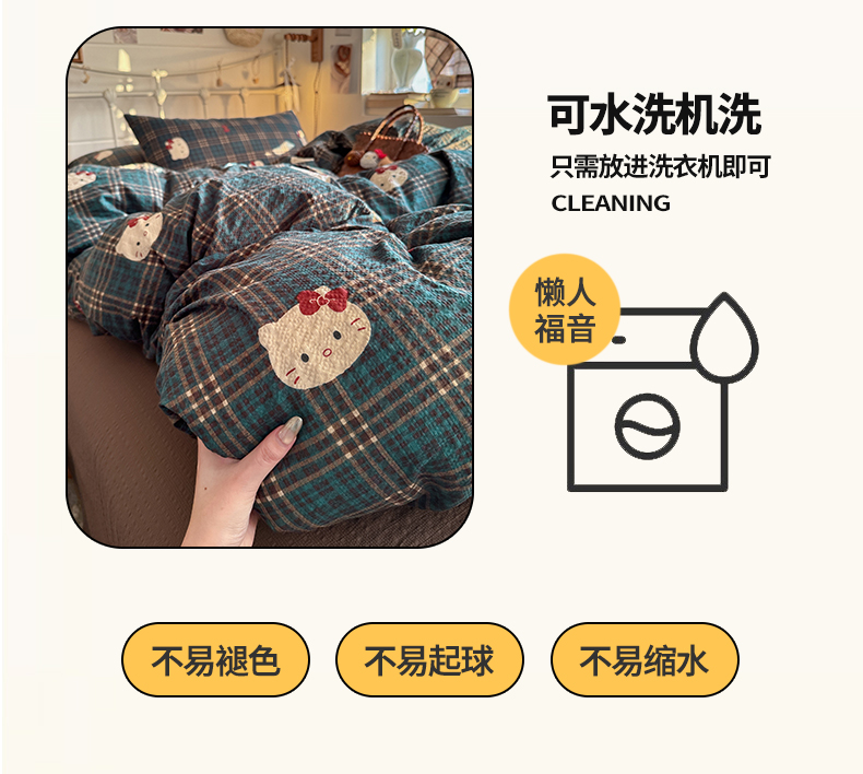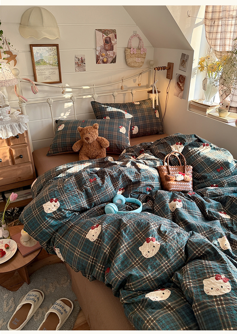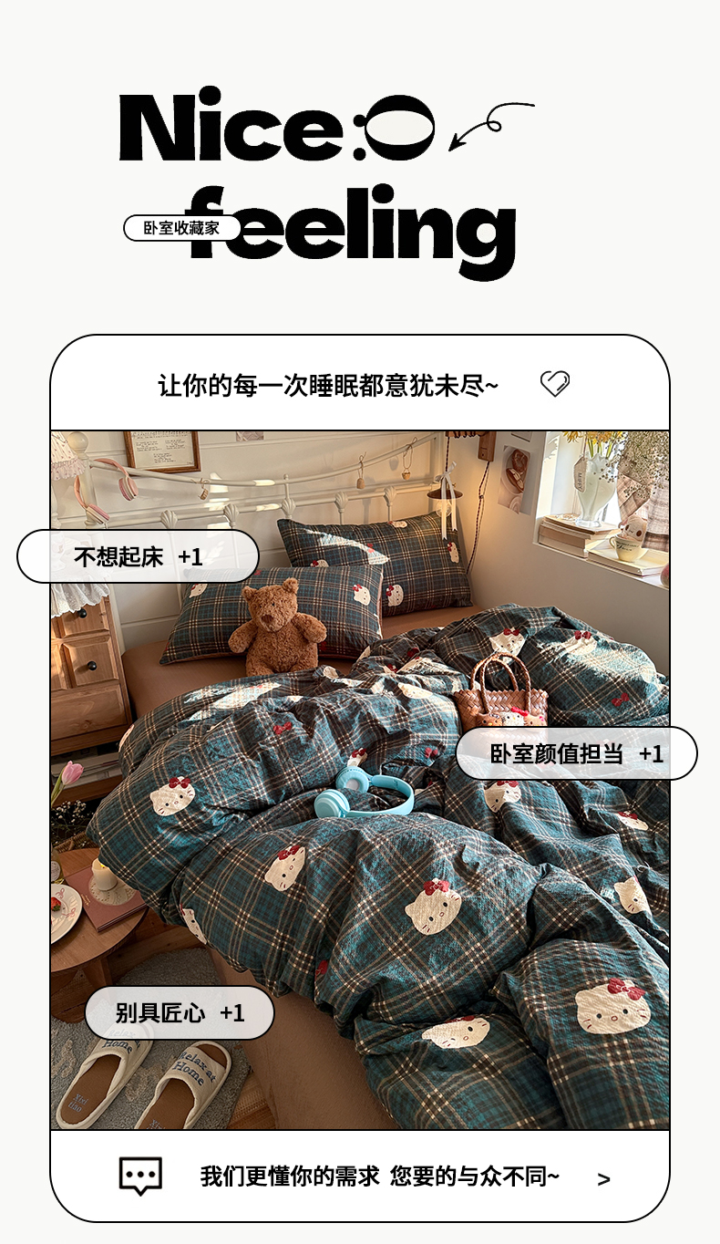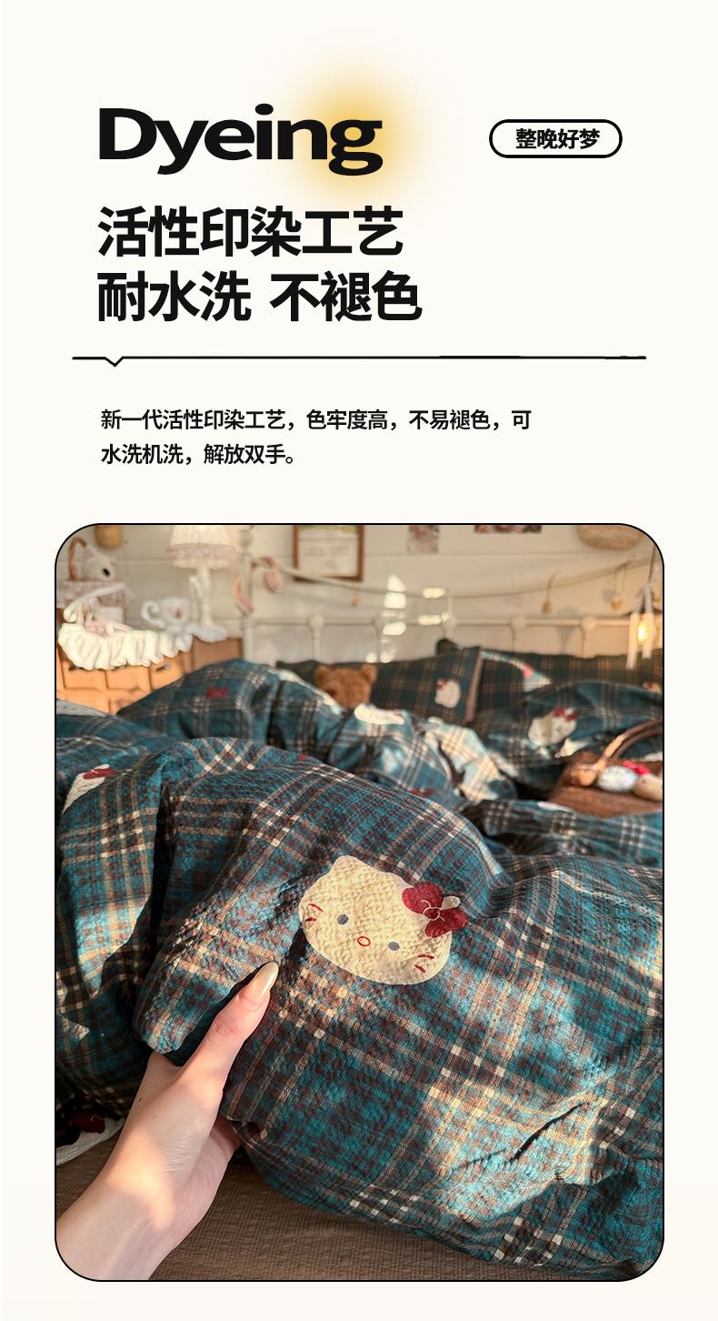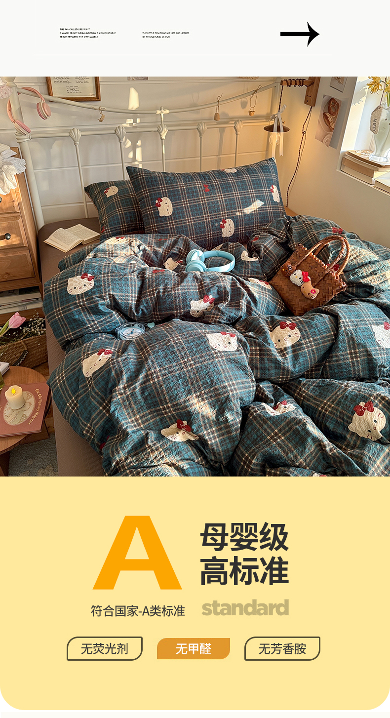 当前位置: 91家纺网 > 商品网购 > 床品套件 > 四件套 > 其它四件套 > 初念 2026新款A类高品质110克超柔泡芙纱四件套 绿格小猫