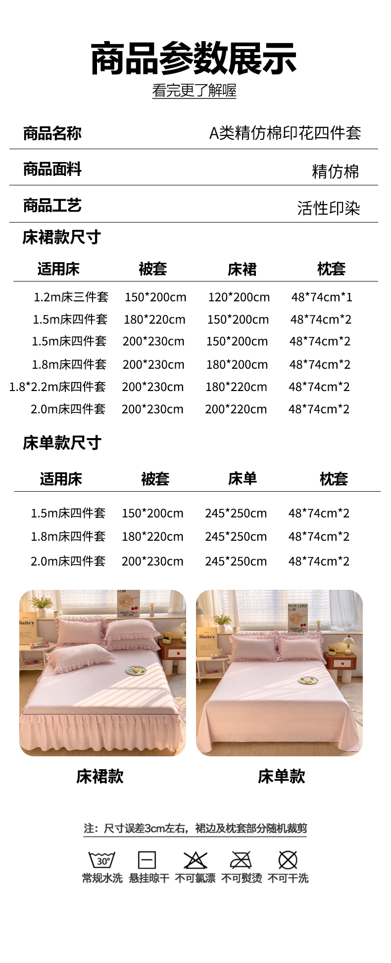 【床裙款】1.8x2.0四件套-被套200x230 | ¥64.00 |