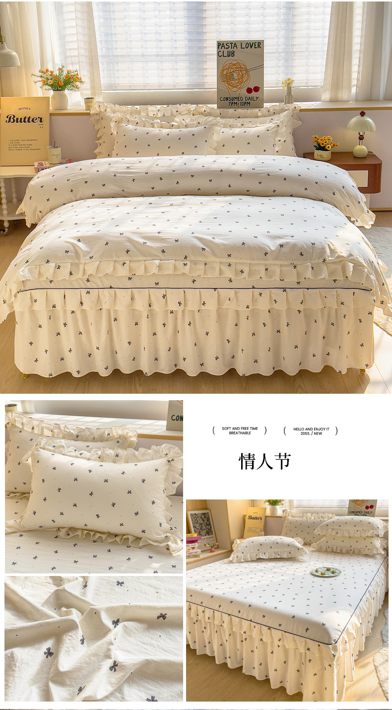 当前位置: 91家纺网 > 商品网购 > 床品套件 > 四件套 > 化纤普通四件套 > 优家居 2026新款精仿棉床裙四件套水洗棉韩版公主风花边床裙单被套直播外贸定制 丝丝心动