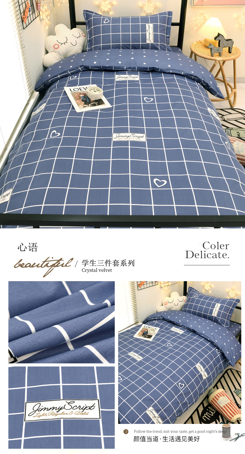 (总)朵希曼 2026新款全棉13372学生三件套系列,爱的萌牛,艾伦-粉,伯爵-灰,都市柔情,方格时代,芳菲,芳华,风尚-灰,风尚-蓝,海豚-粉,海豚-蓝,几何空间,简美,乐章,墨尔本,品尚,轻居,心语,心悦,幸运星-蓝,怡然,英伦,月羽,LOVE