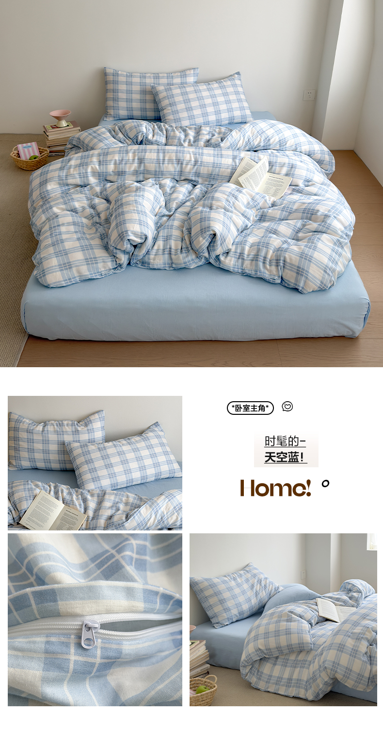 当前位置: 91家纺网 > 商品网购 > 床品套件 > 四件套 > 双层纱四件套 > 玖弘家居 2026新款全棉双层纱格子四件套(默认格子枕套) 天空蓝