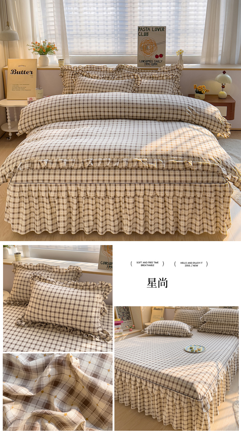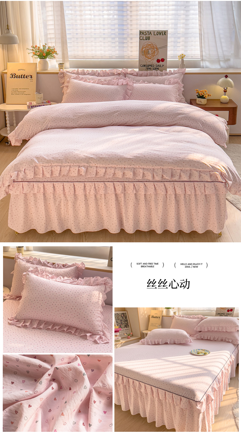 当前位置: 91家纺网 > 商品网购 > 床品套件 > 四件套 > 其它四件套 > 优家居工厂店 2026新款精仿棉床裙四件套水洗棉韩版公主风花边床裙单被套直播外贸定制 星星熊