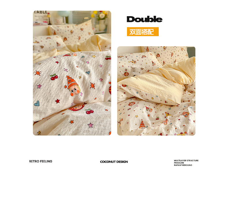 商品名称:(总)优选 2026新款110g小清新高克重高品质直播热卖款A类泡芙棉双层纱四件套