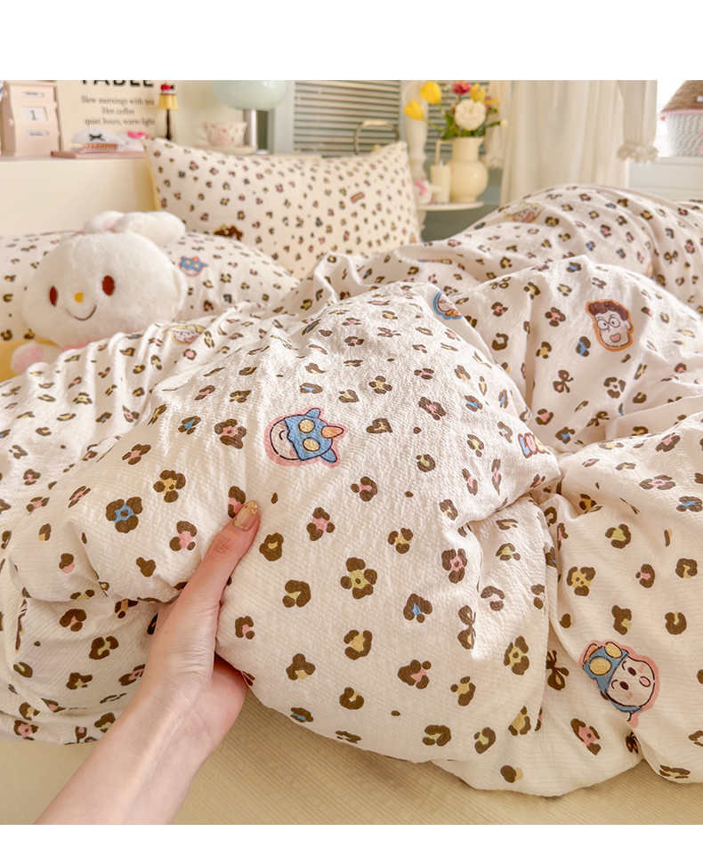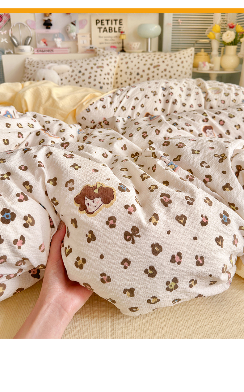 当前位置: 91家纺网 > 商品网购 > 床品套件 > 四件套 > 其它四件套 > 优选良品 2026新款小清新110g高品质直播热卖款A类泡芙棉双层纱四件套 好朋友