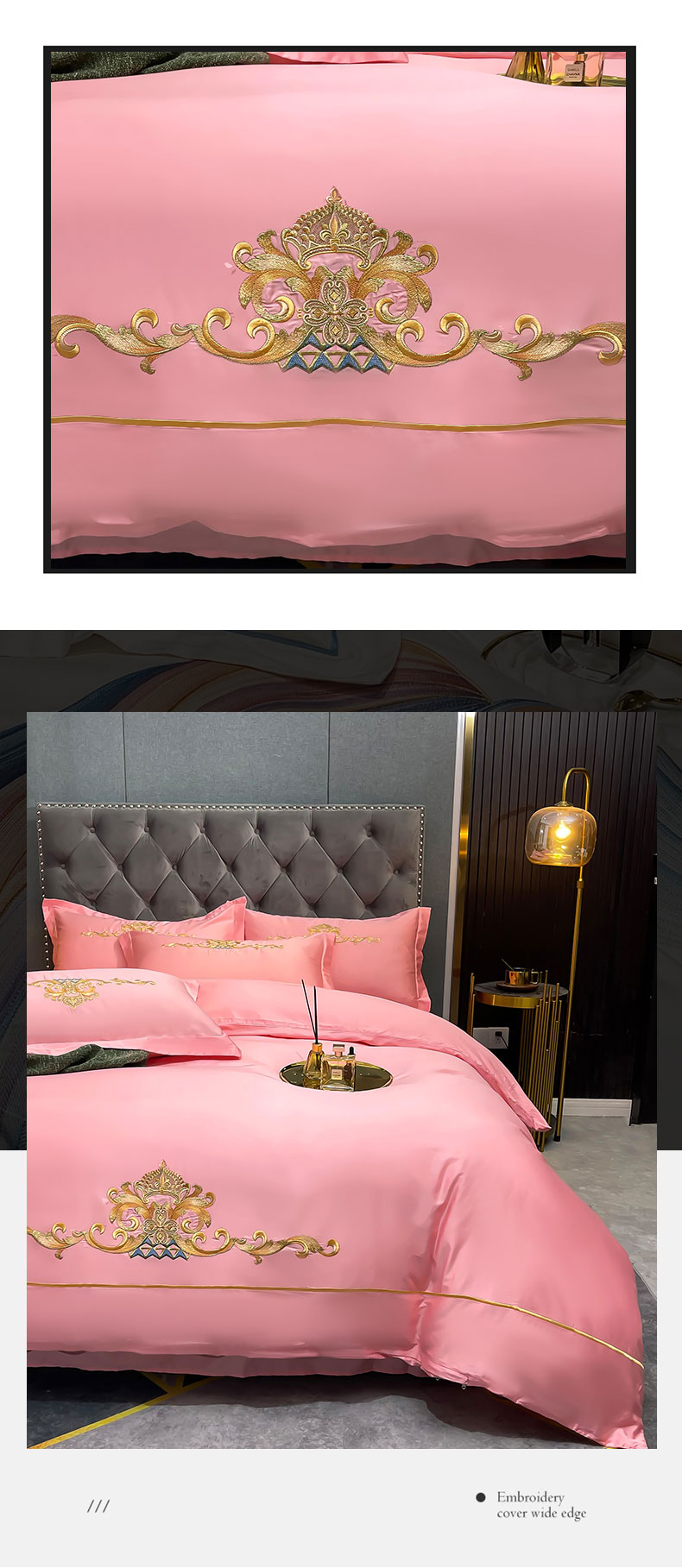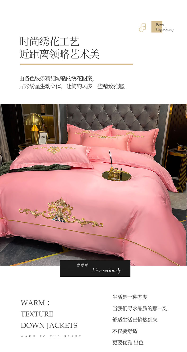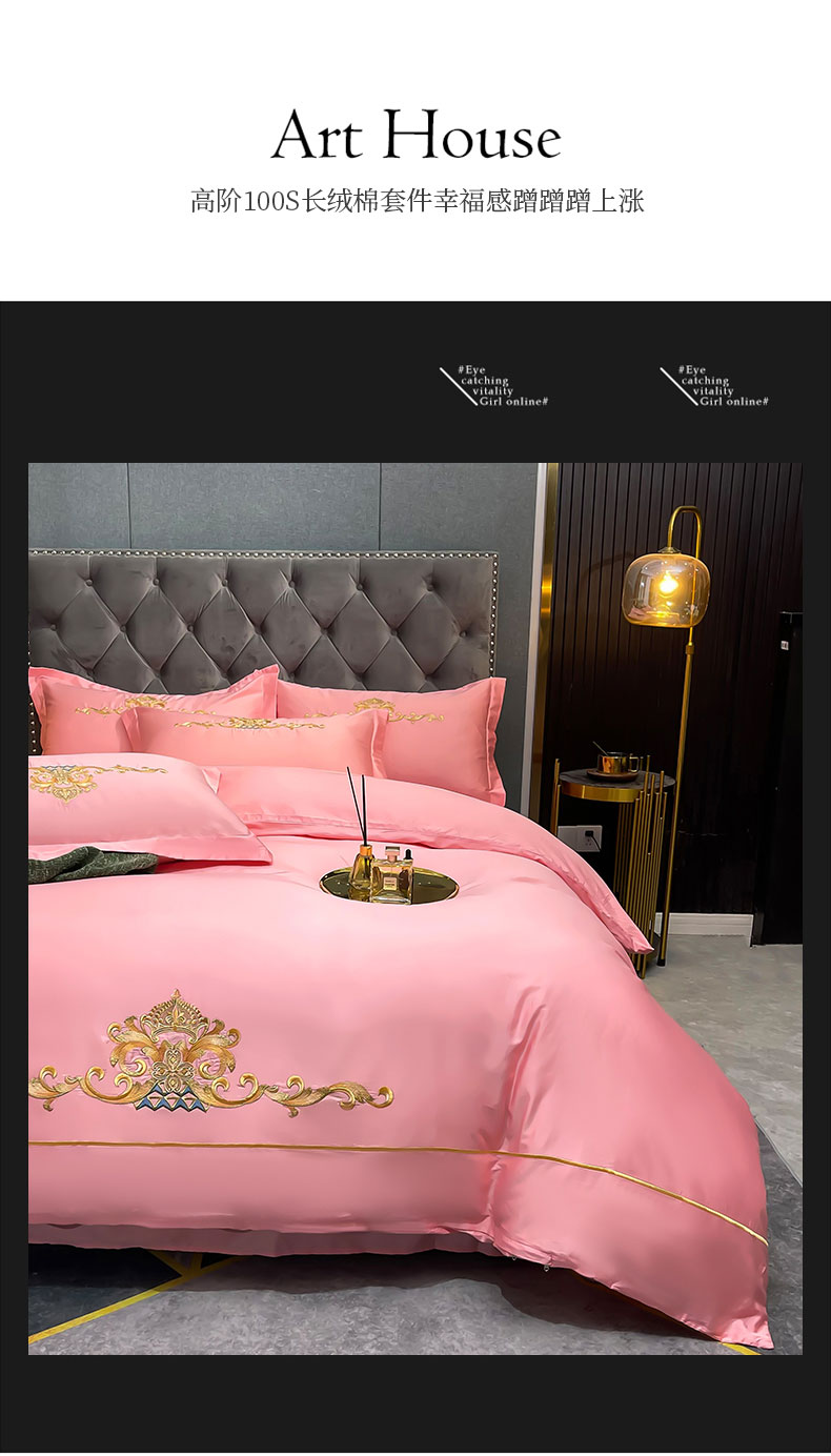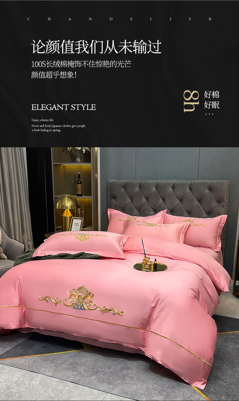 慕她家纺 2026年全棉纯棉婚庆四件套大红色刺绣结床上用品 皇家风范粉玉